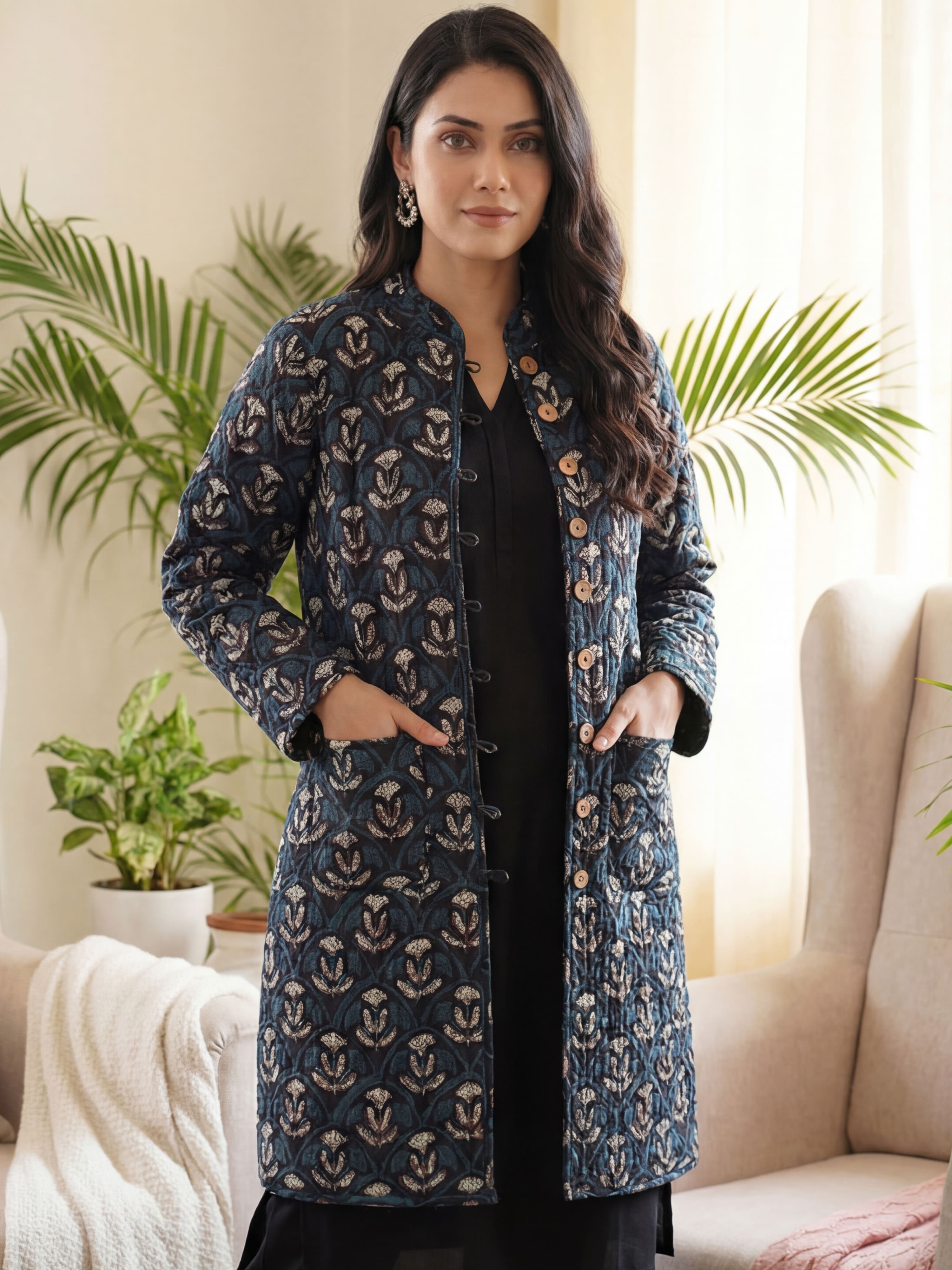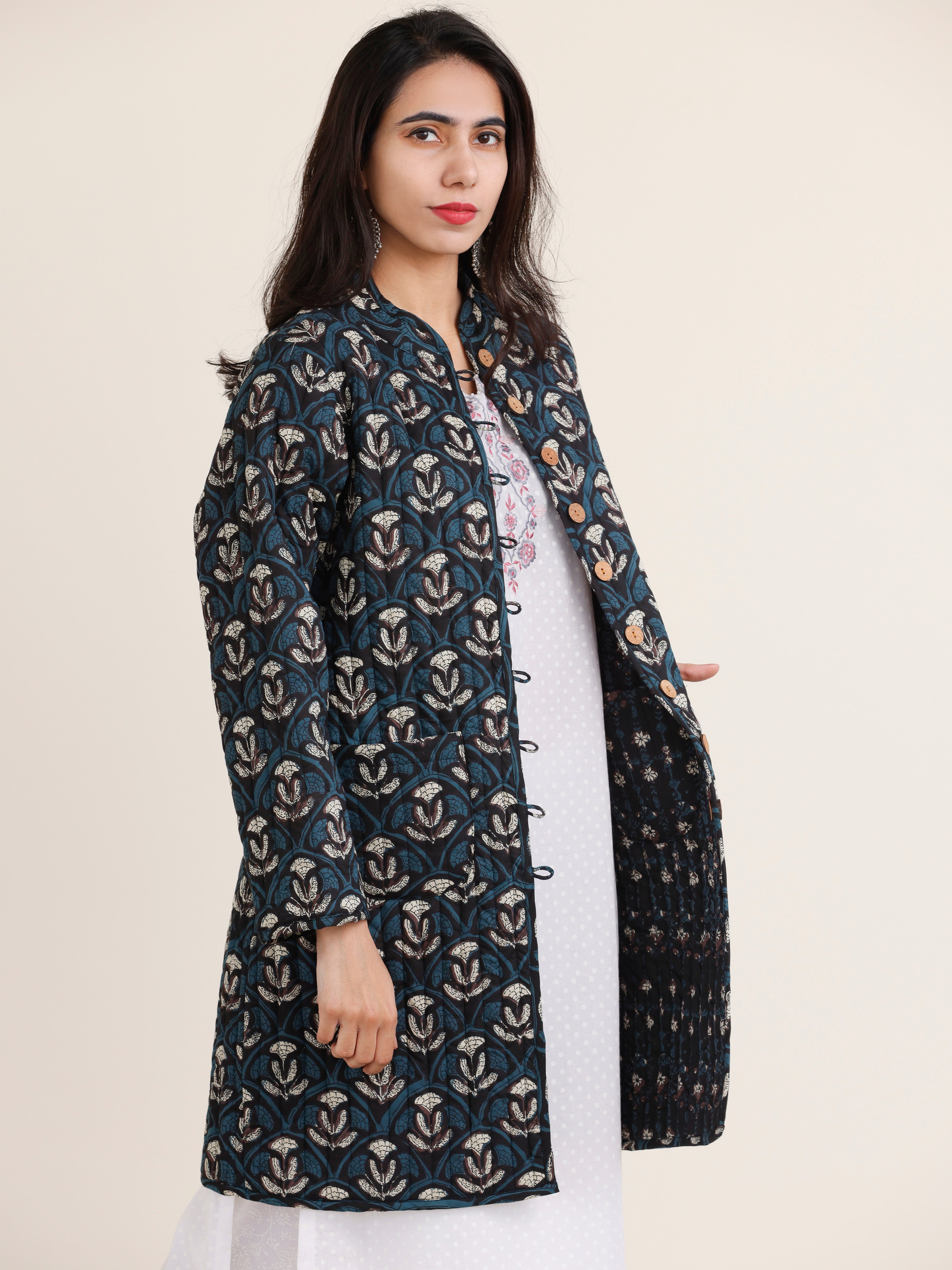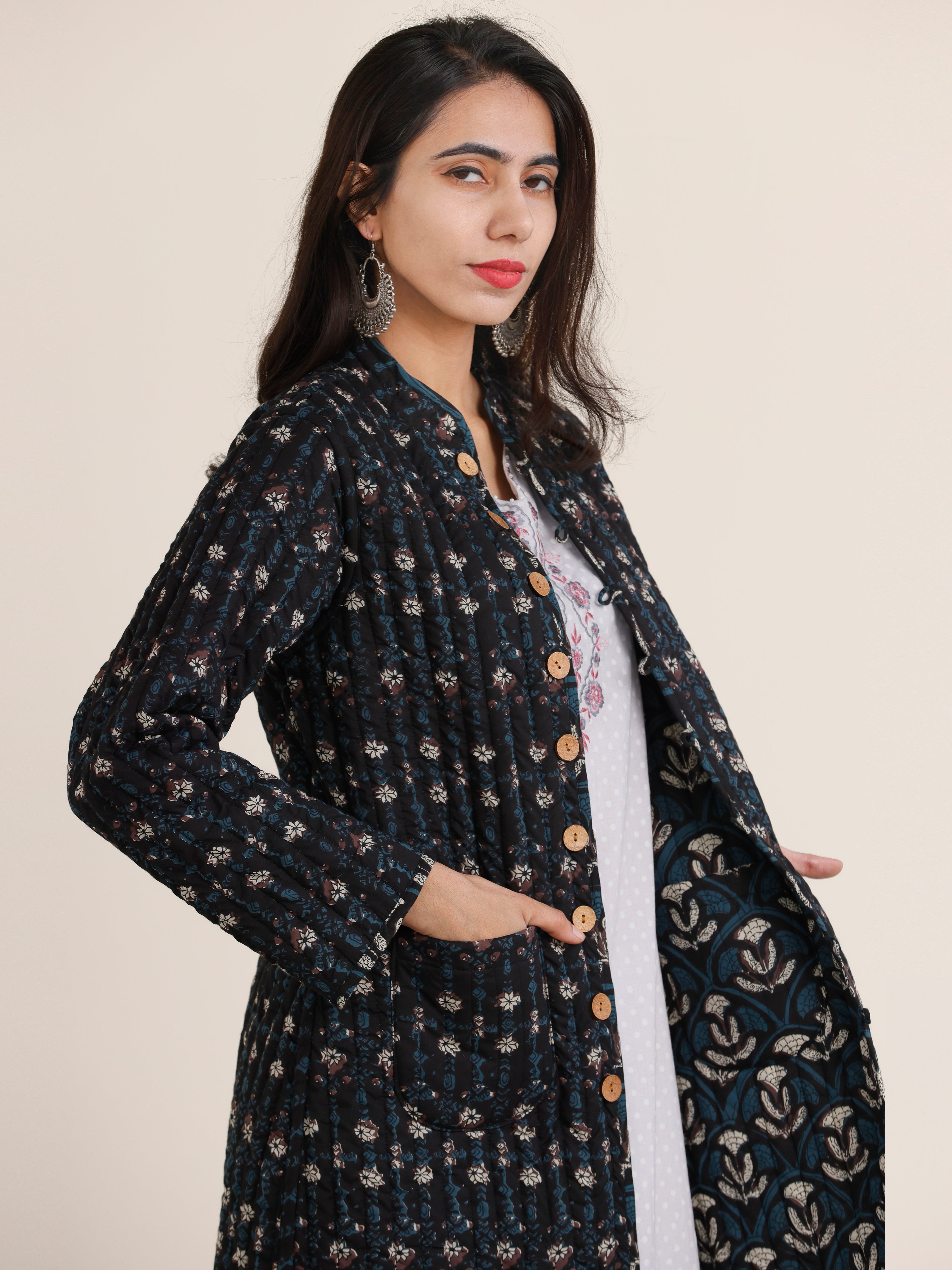 PRODUCT: Handcrafted Reversible Quilted Jacket with intrinsic and alluring work of block print on both the sides.