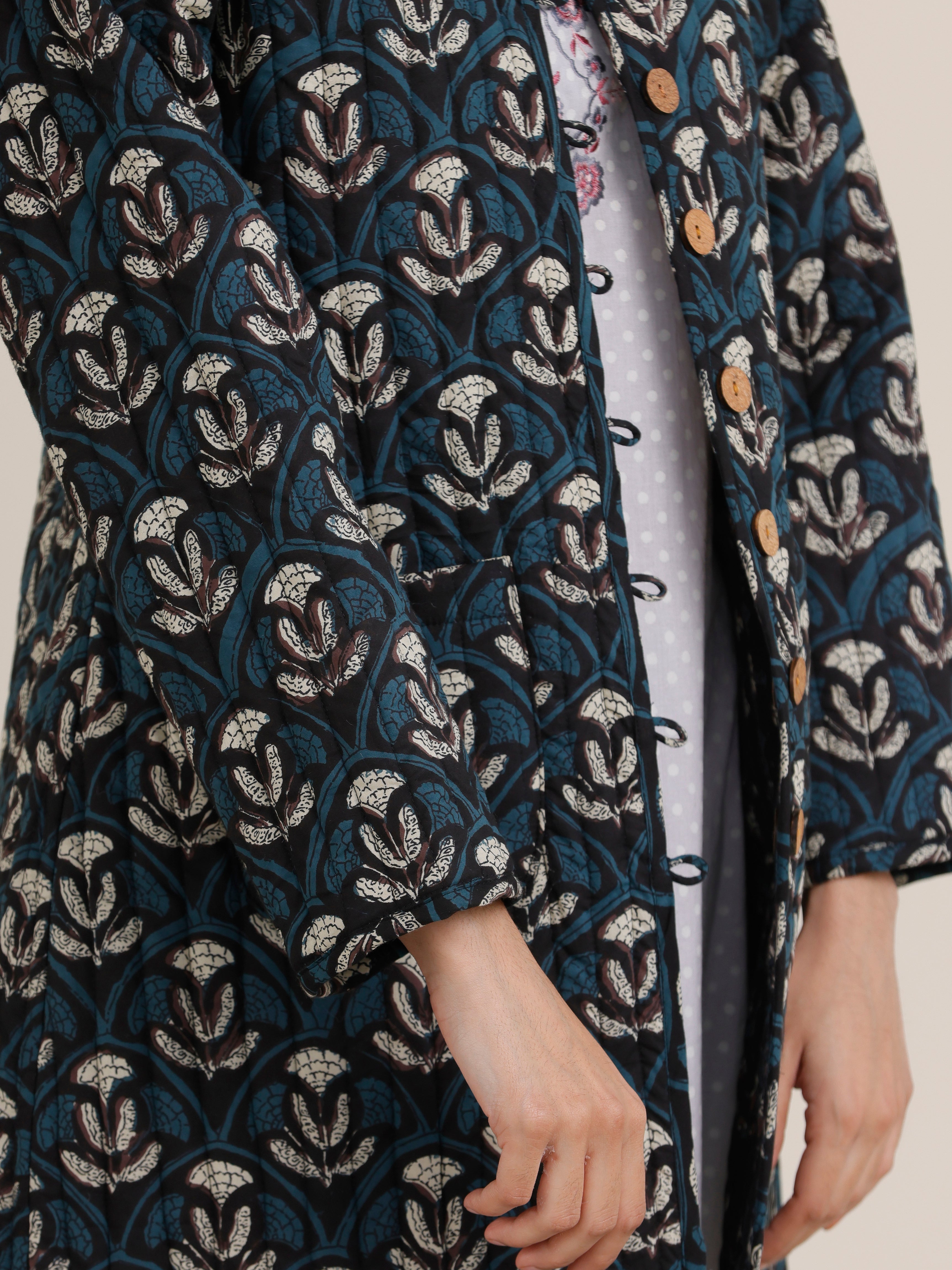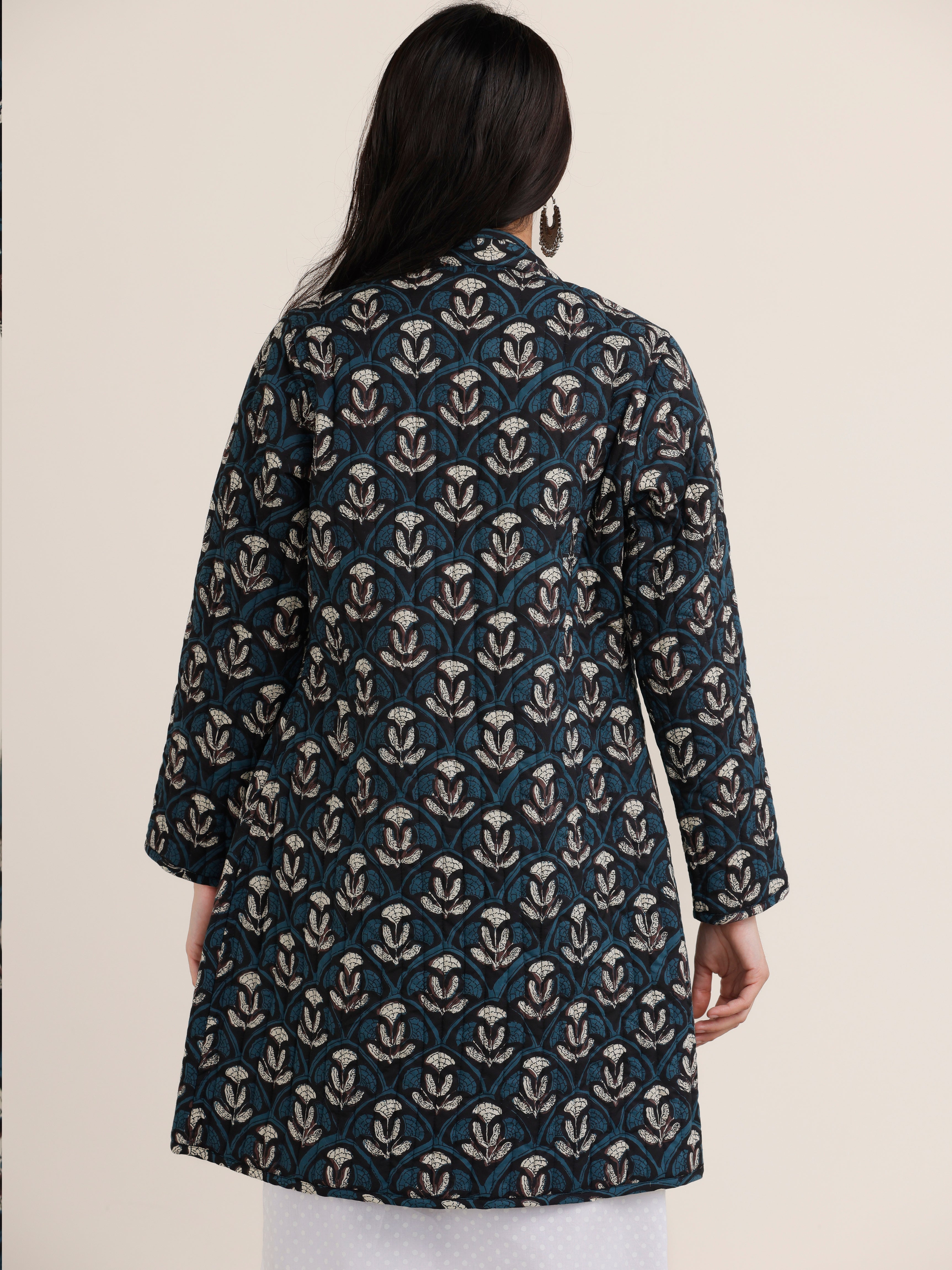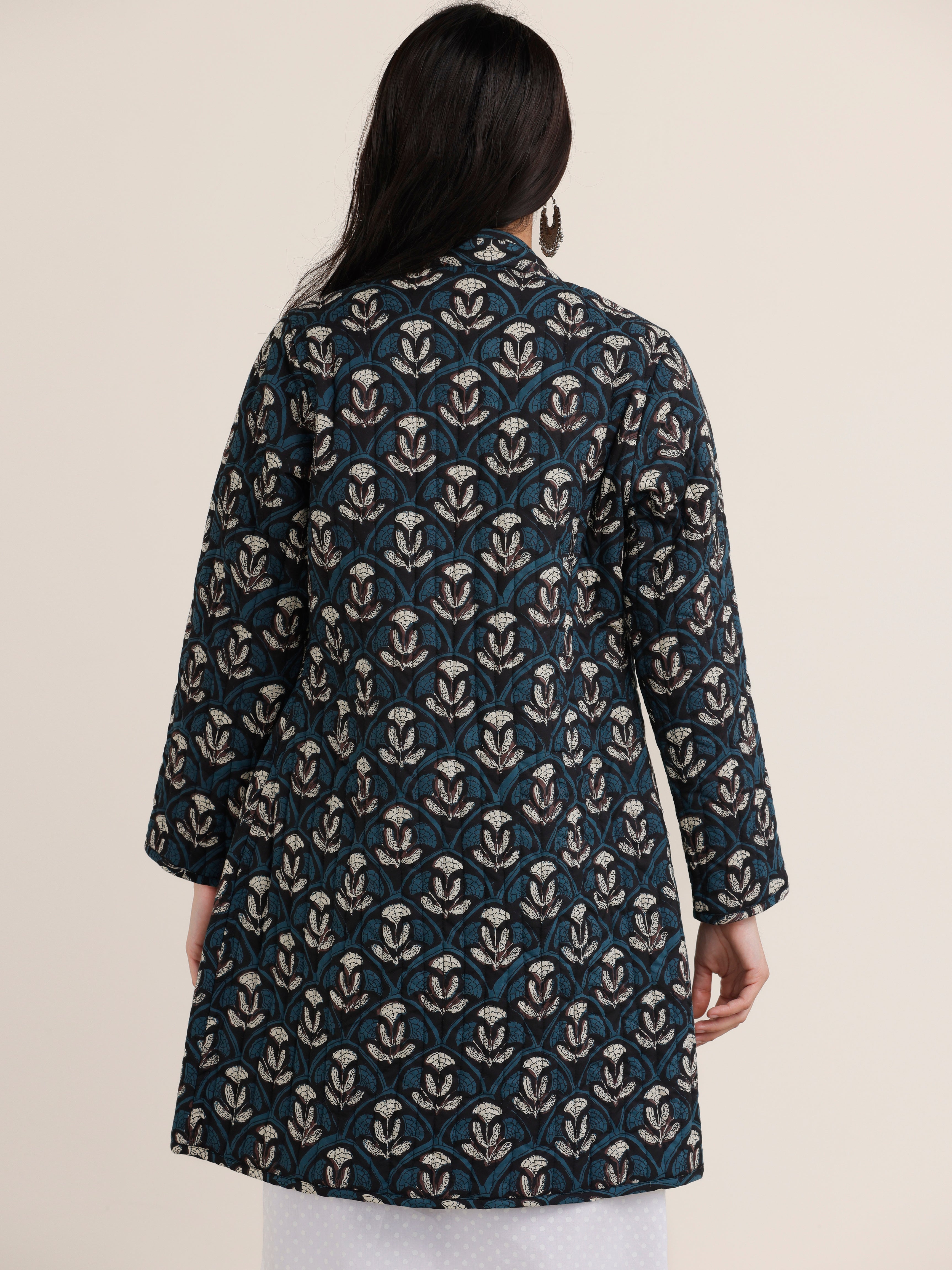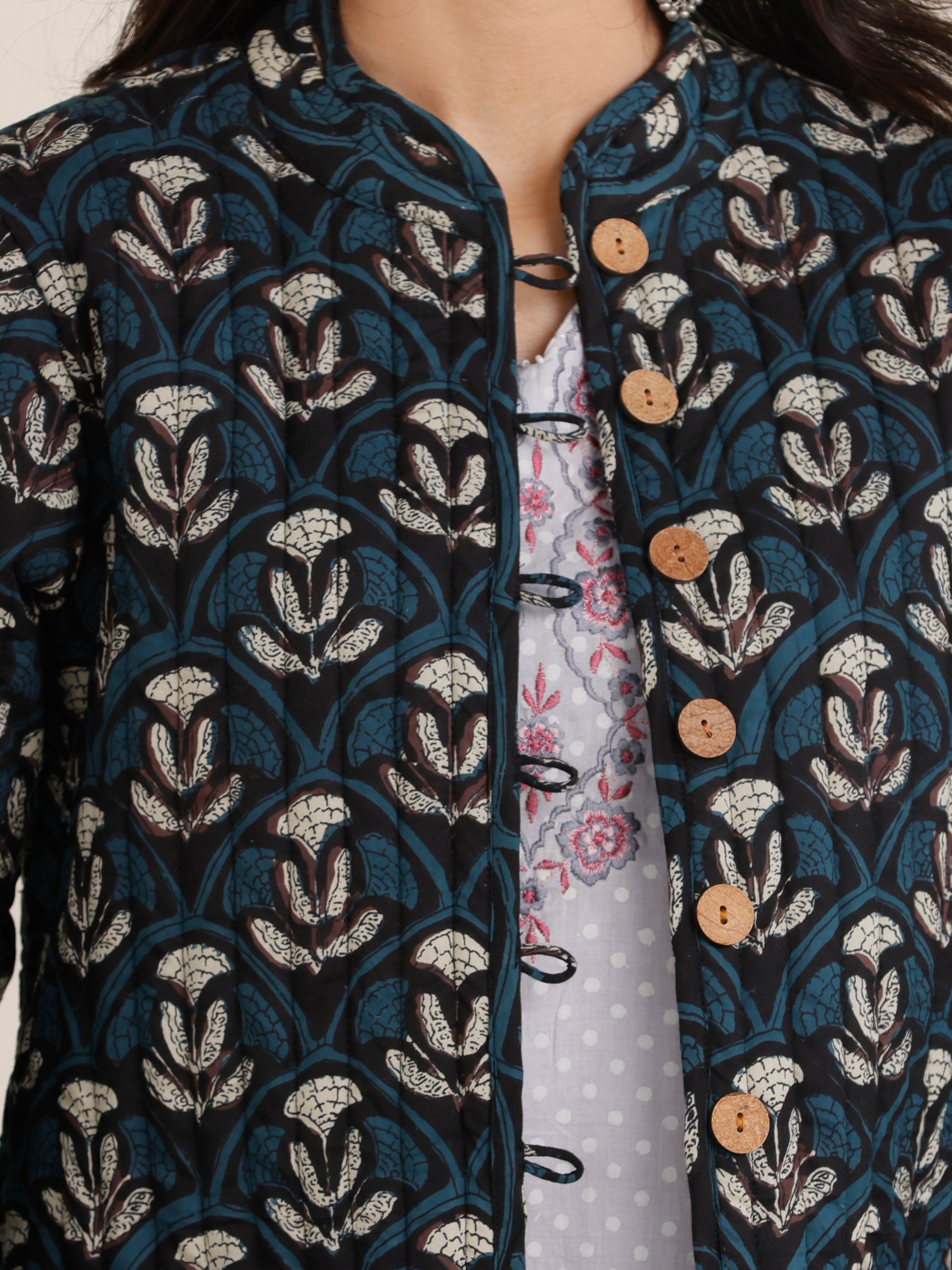 PRODUCT: Handcrafted Reversible Quilted Jacket with intrinsic and alluring work of block print on both the sides.