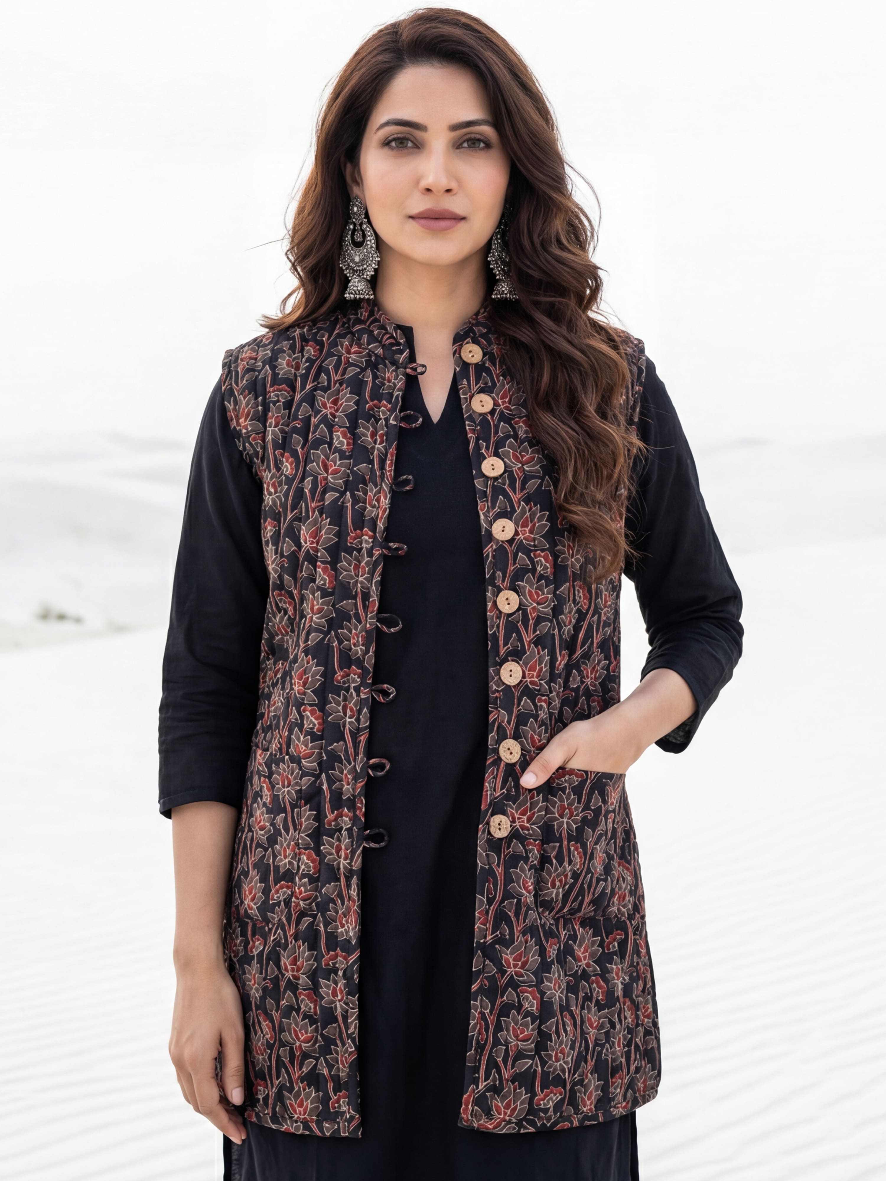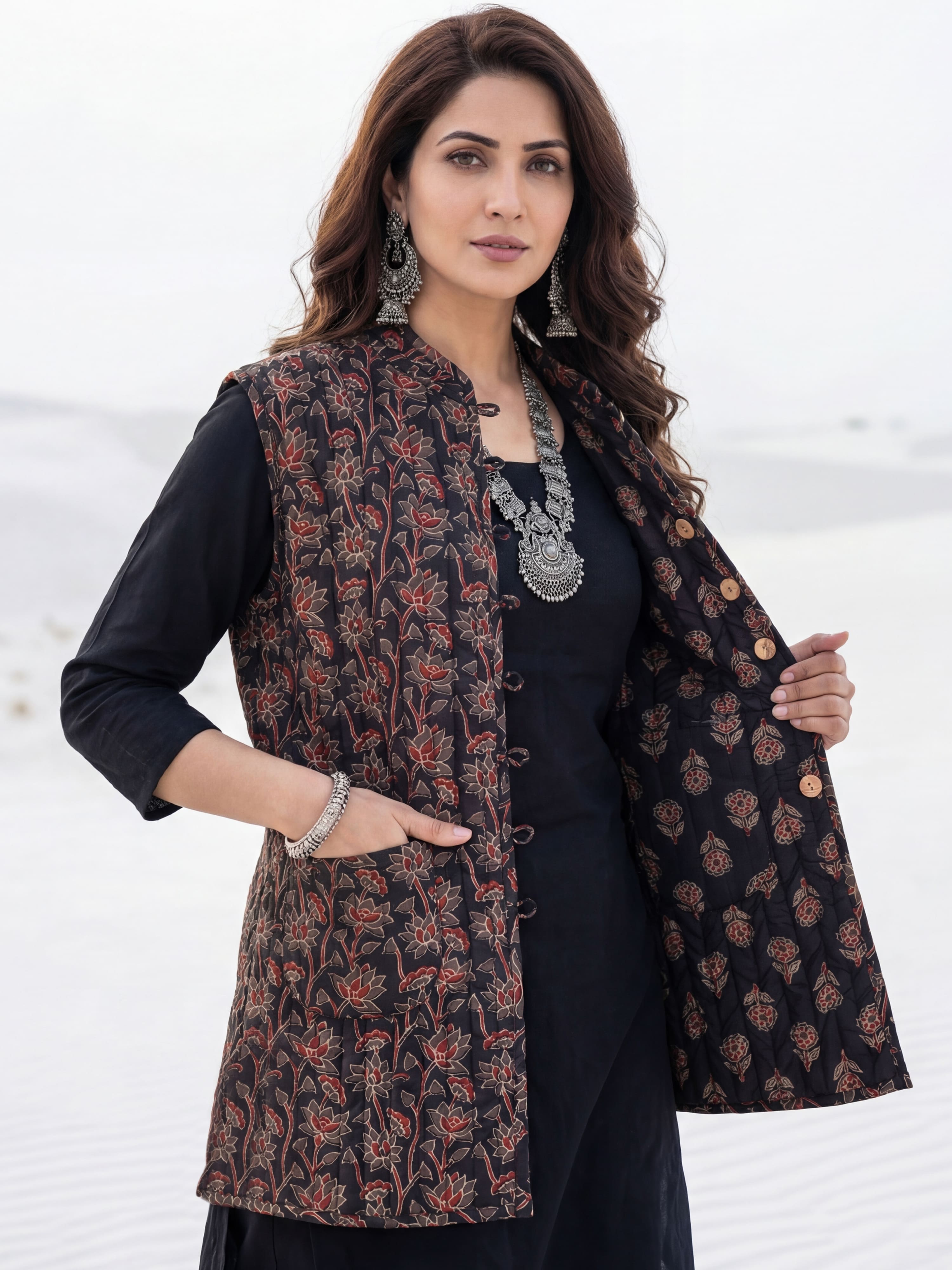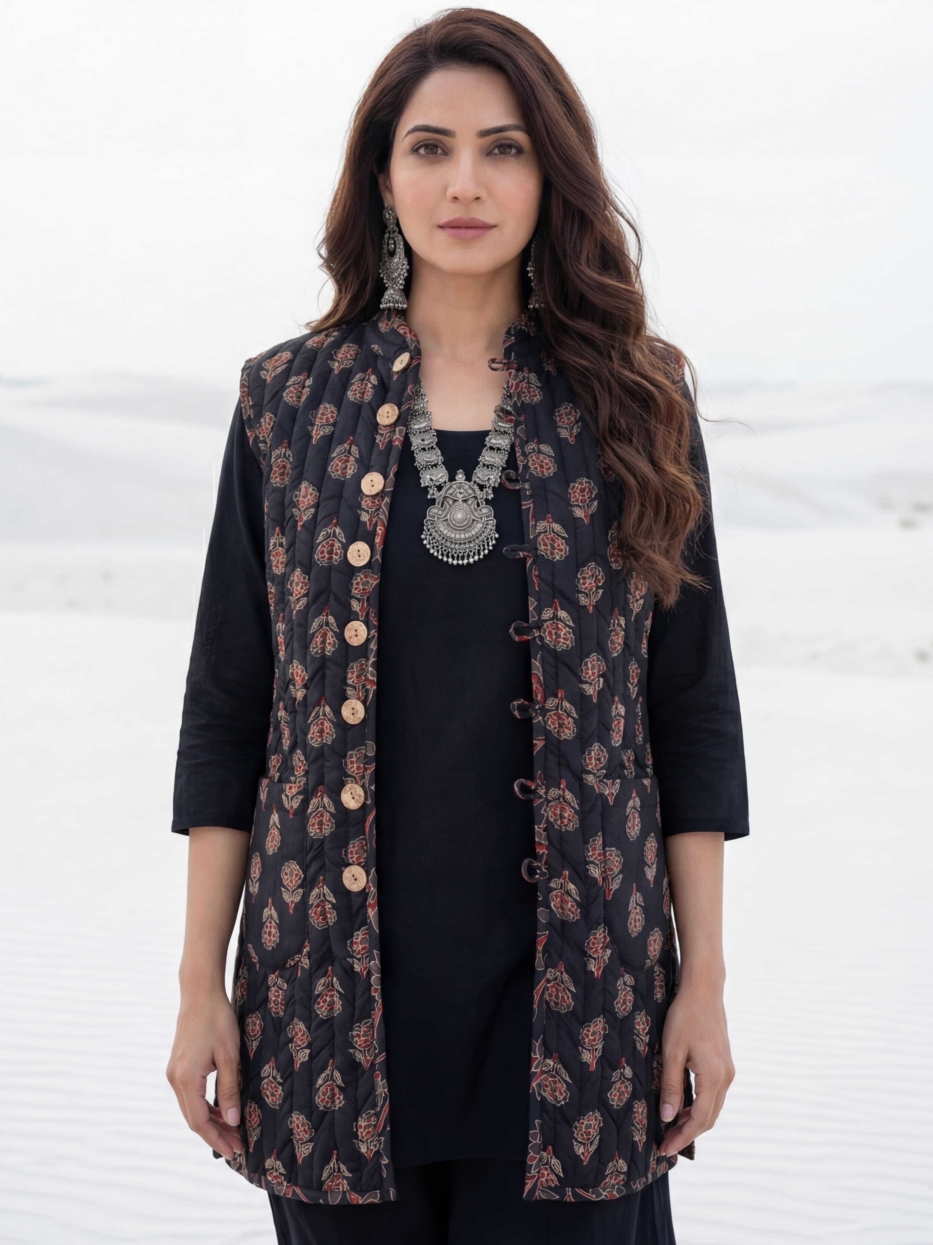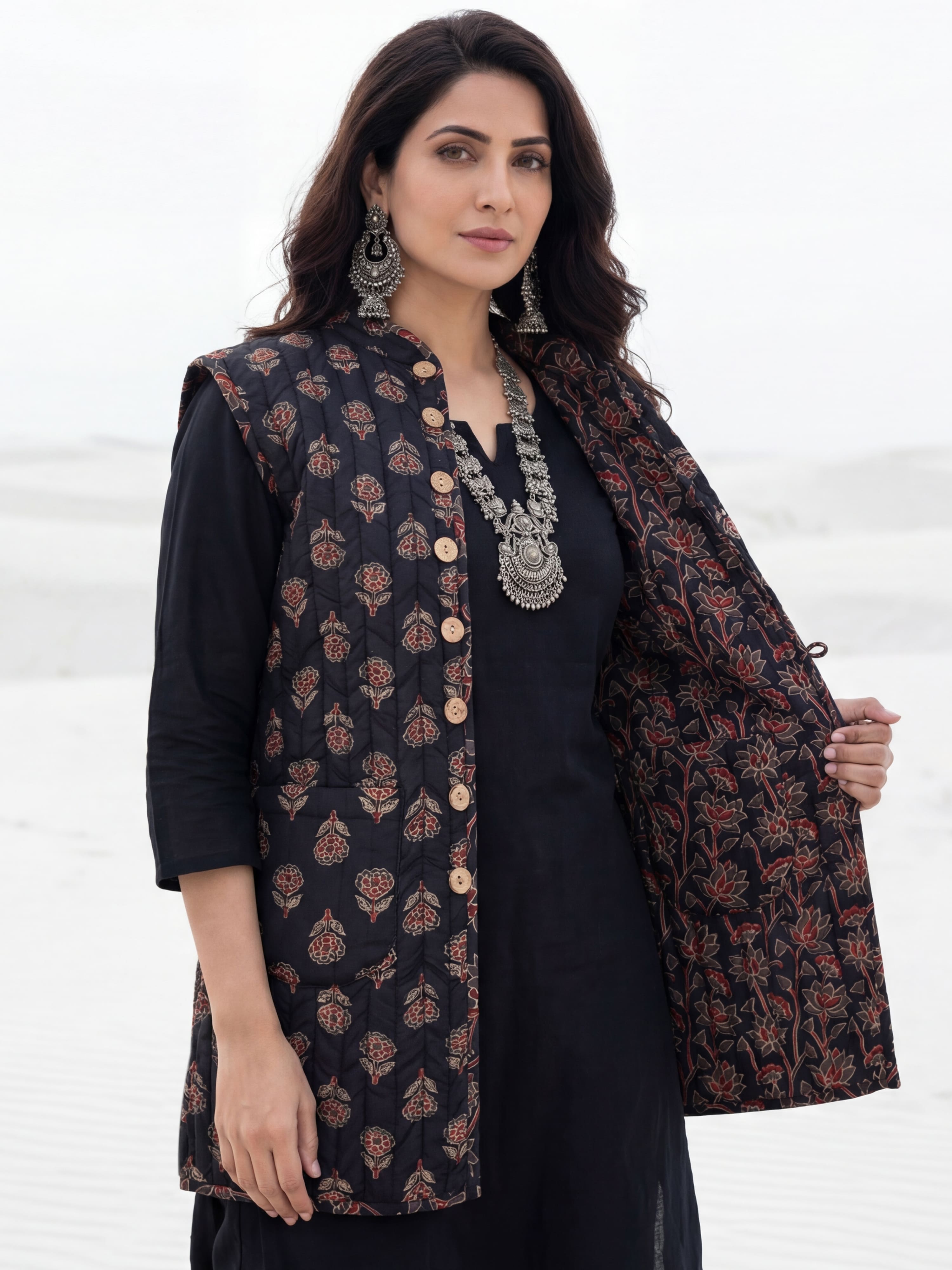 PRODUCT: Handcrafted Reversible Quilted Jacket with intrinsic and alluring work of hand print on both the sides.