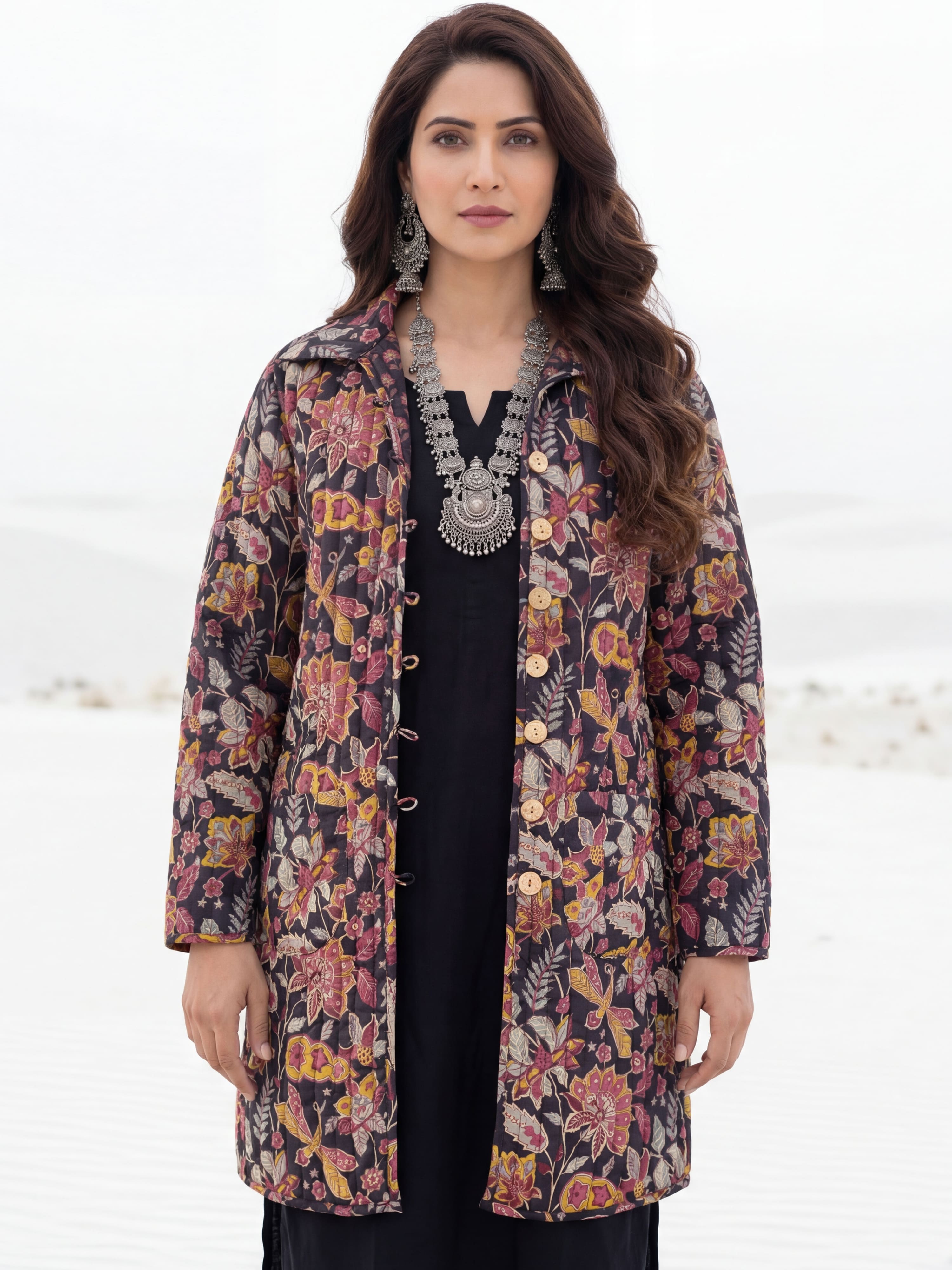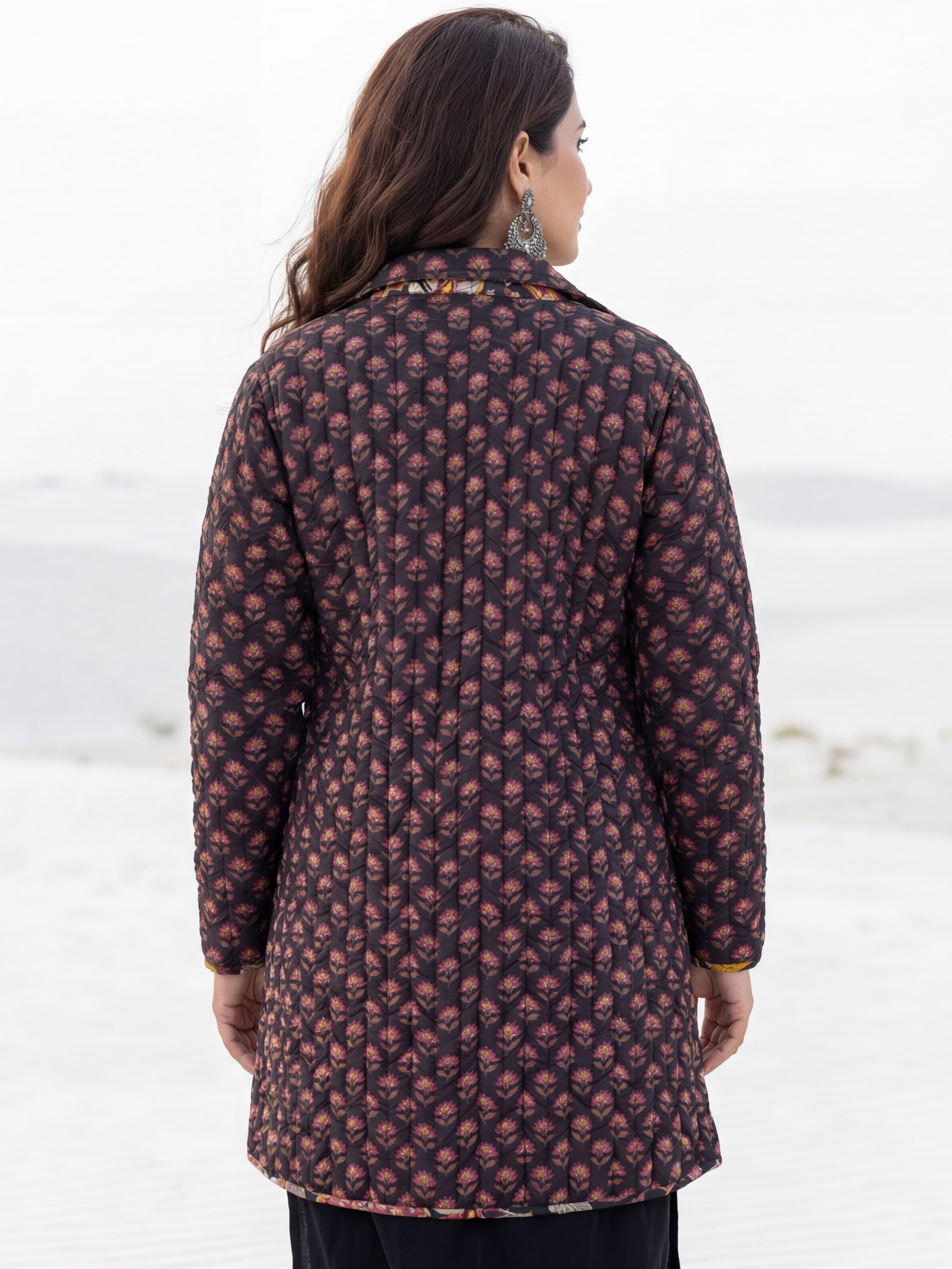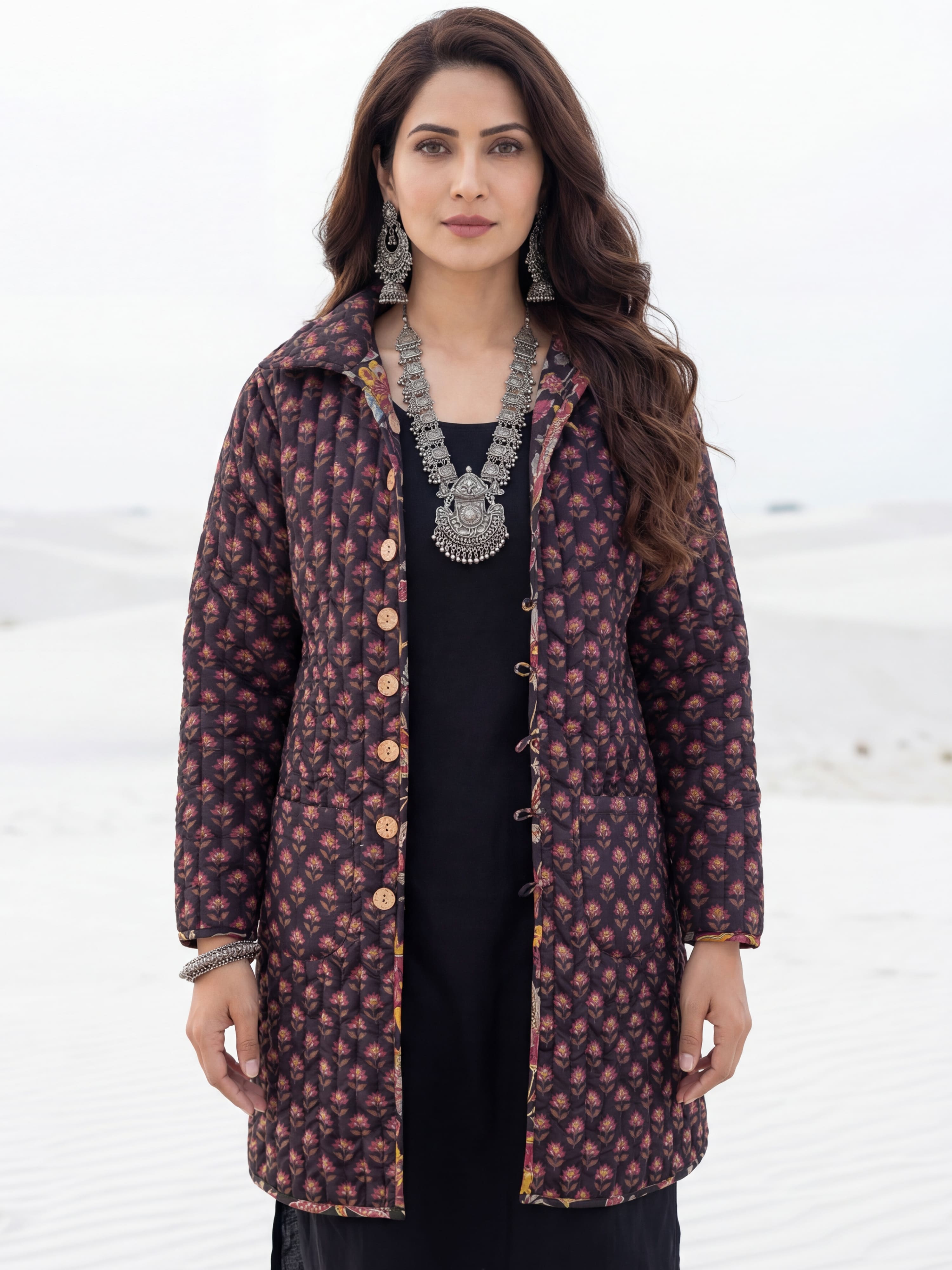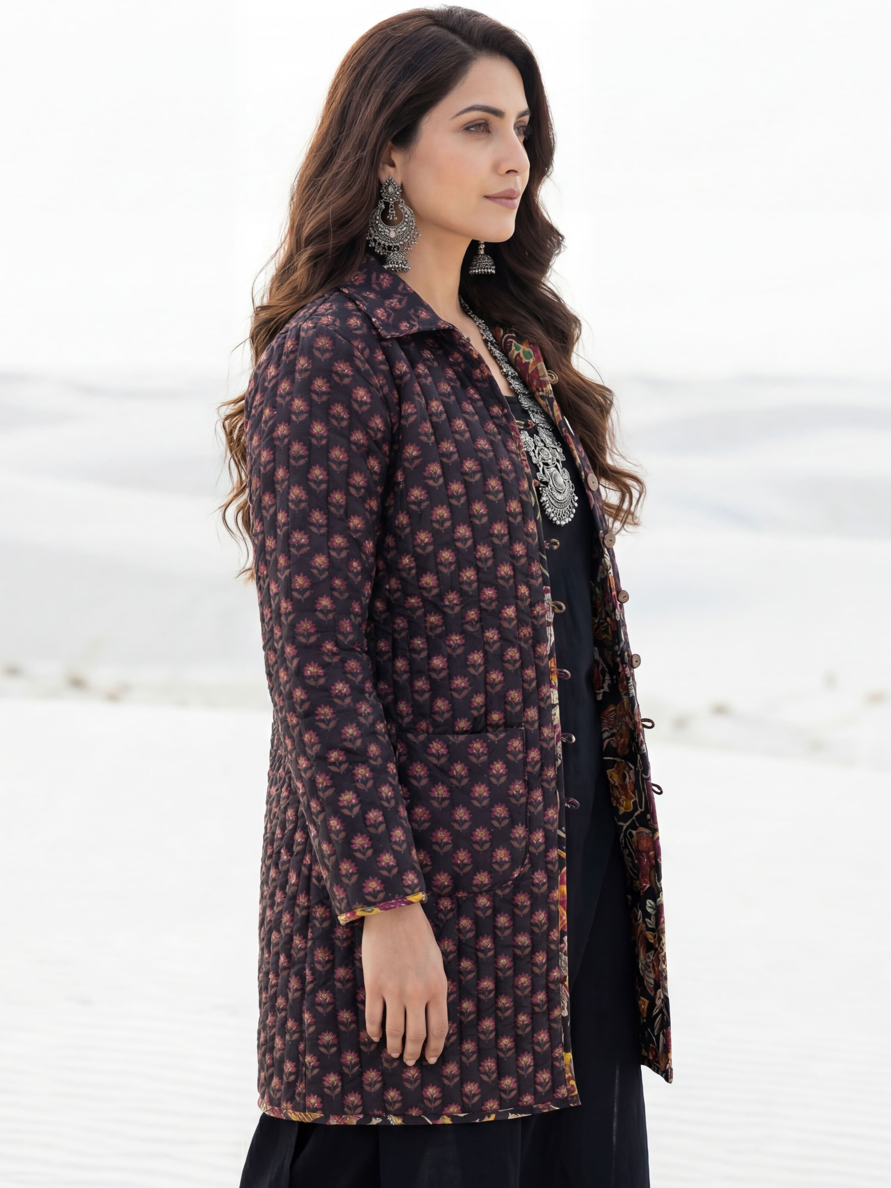 PRODUCT: Handcrafted Reversible Quilted Jacket with intrinsic and alluring work of hand print on both the sides.