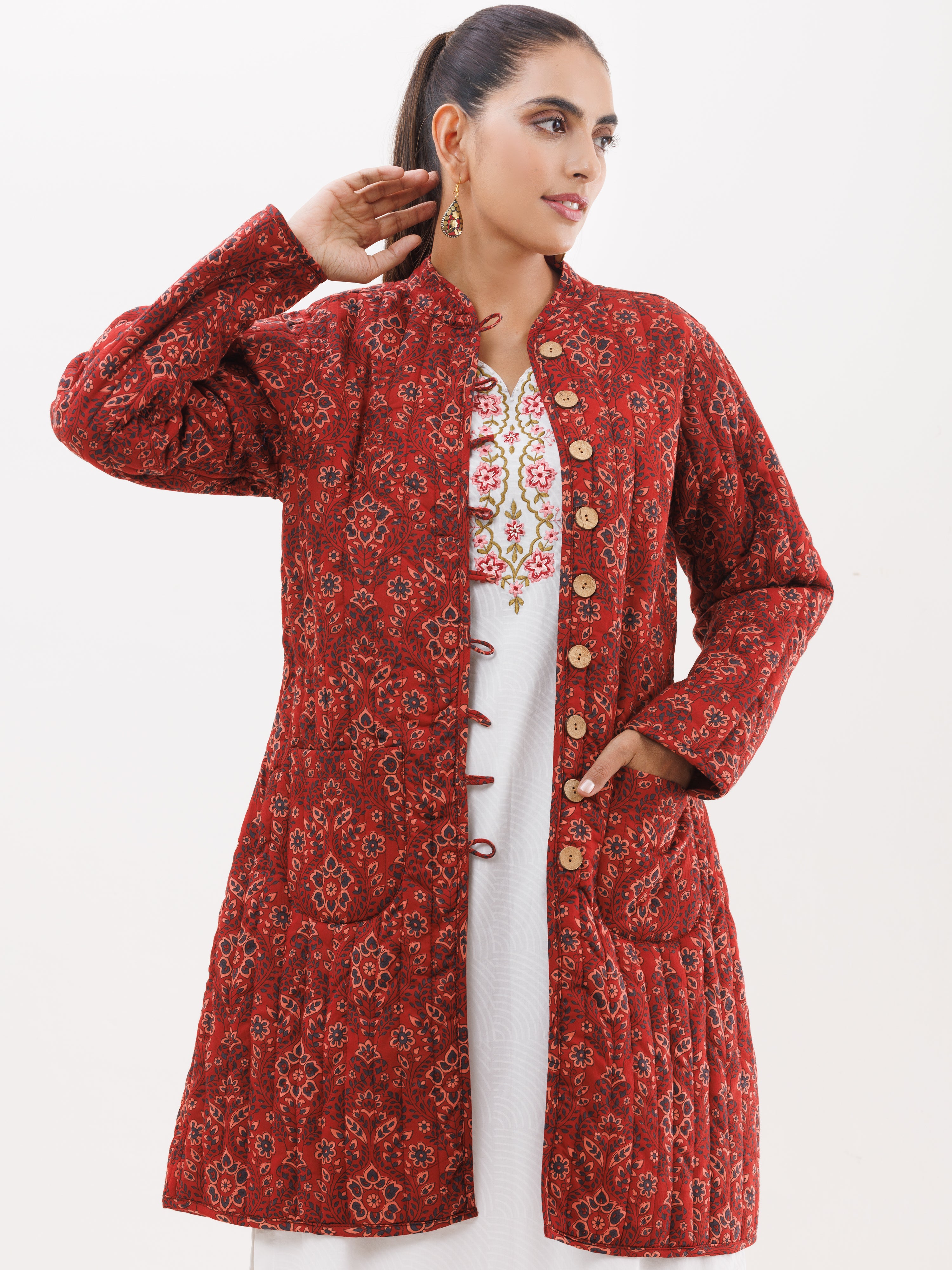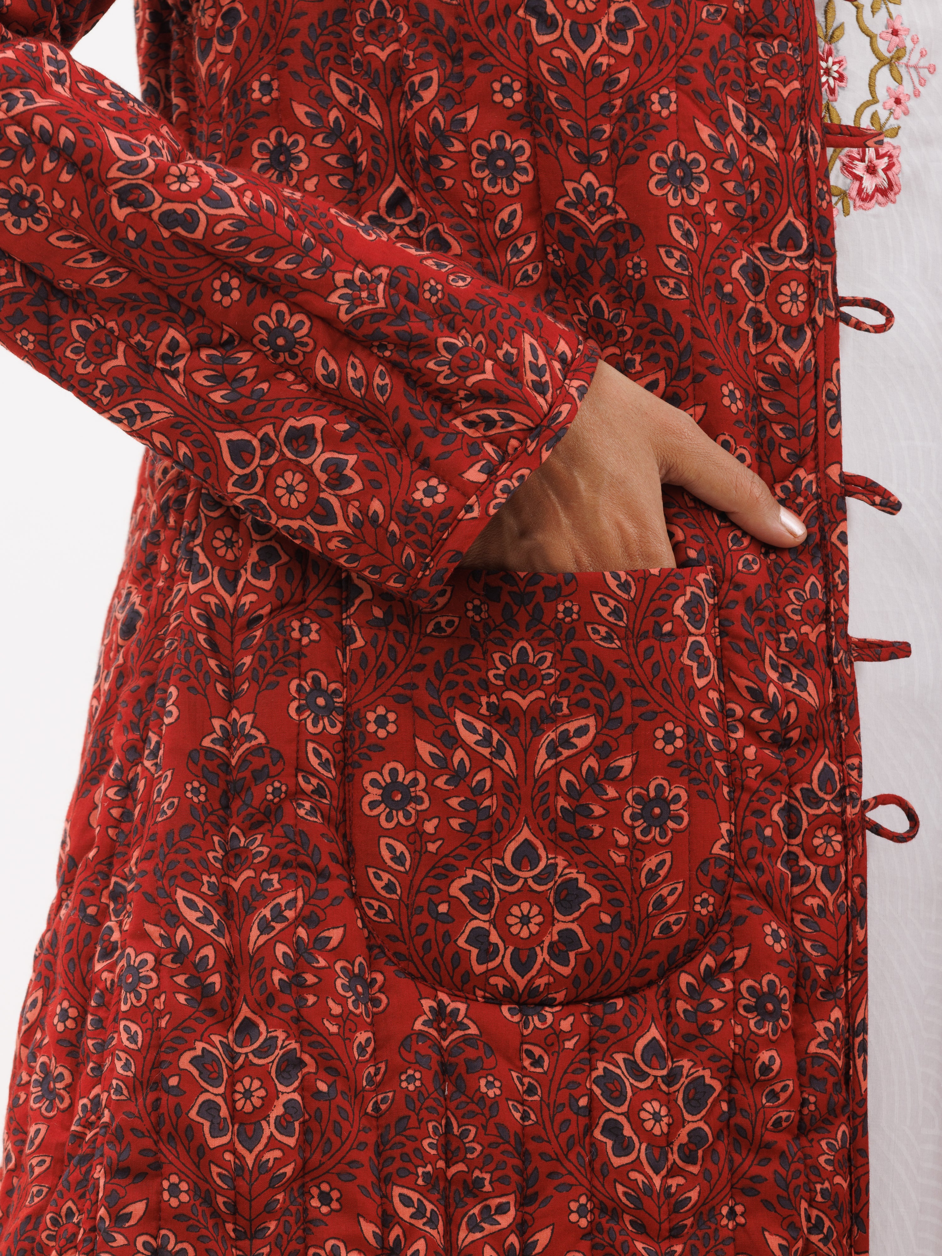 PRODUCT: Handcrafted Reversible Quilted Jacket with intrinsic and alluring work of block print on both the sides.