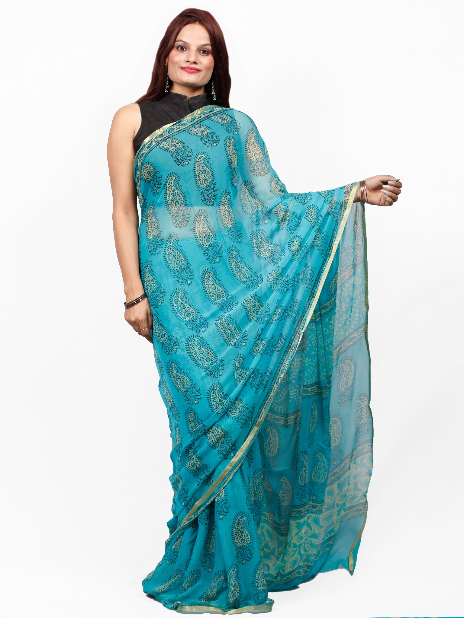 PRODUCT: Saree is Hand Block Printed, dyed in Natural Colors by Artisans in Rajasthan.