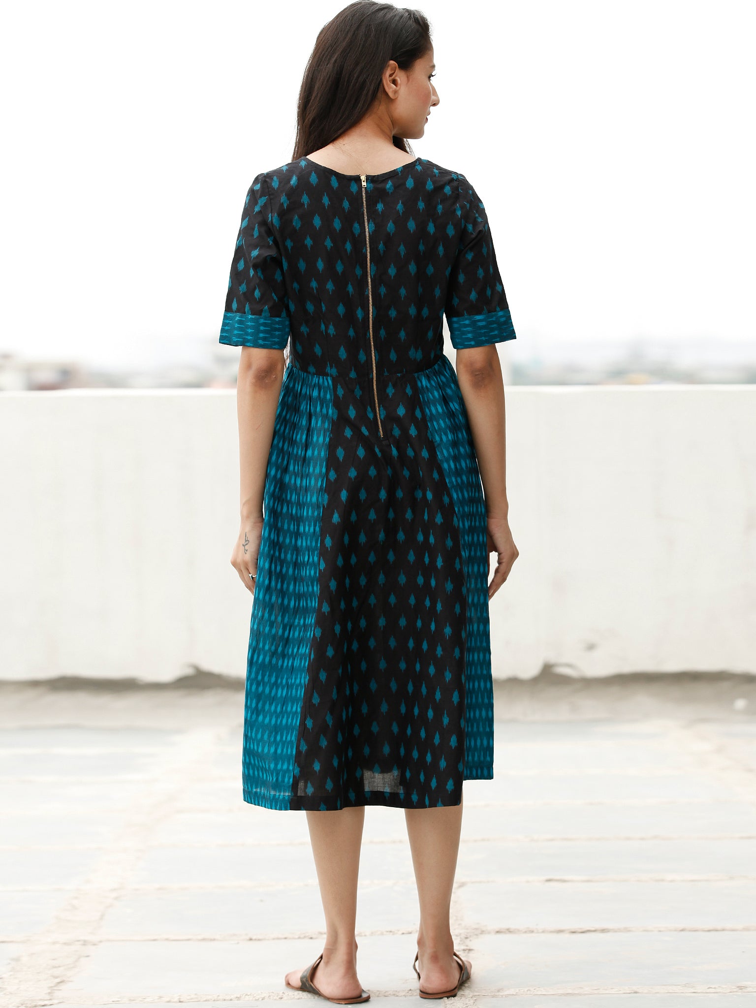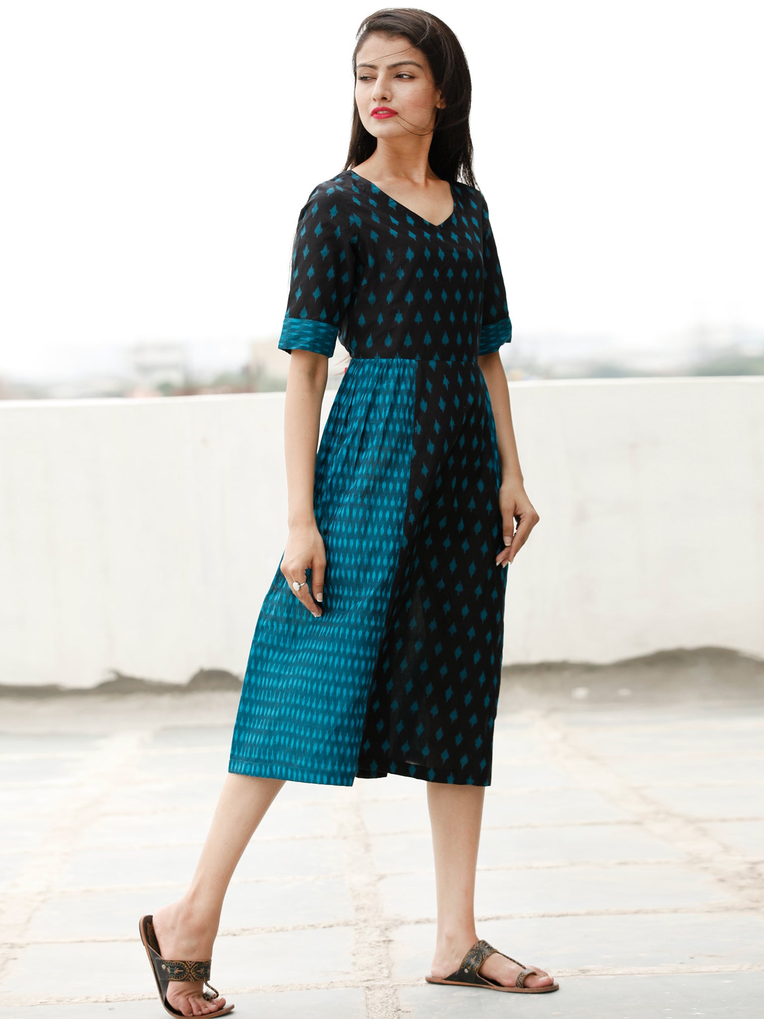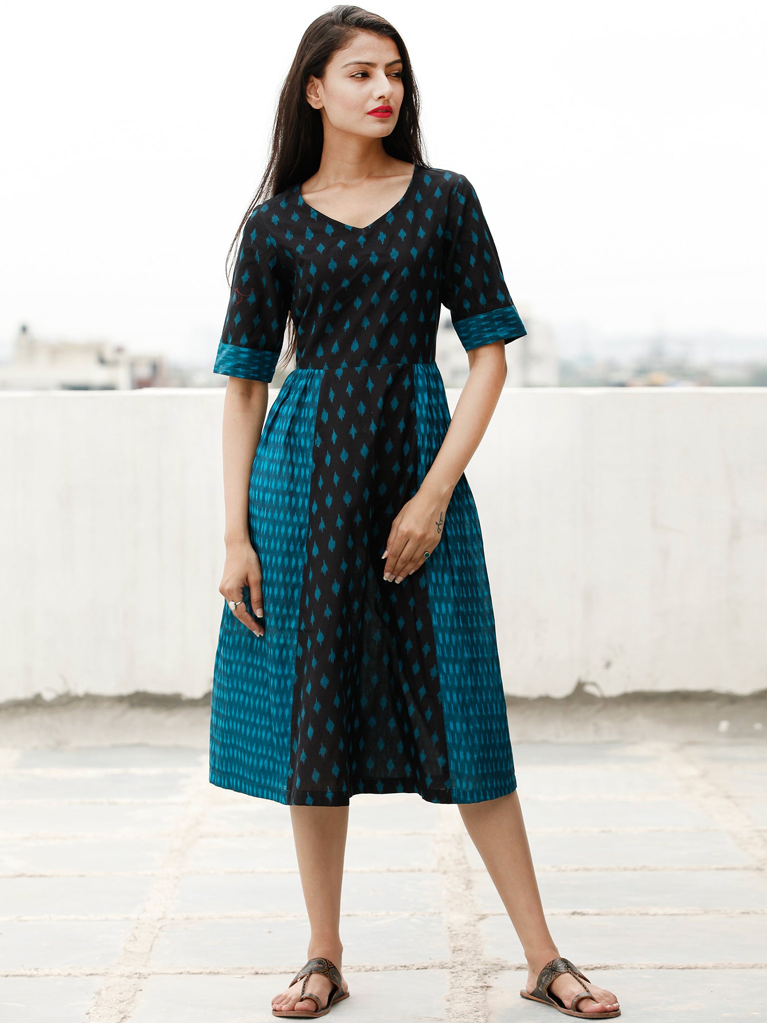 PRODUCT DESCRIPTION: Ikat Middi Dress With Side Pockets. The fabric of this dress is 100% pure cotton, fully hand-woven in Ikat style of dyeing.