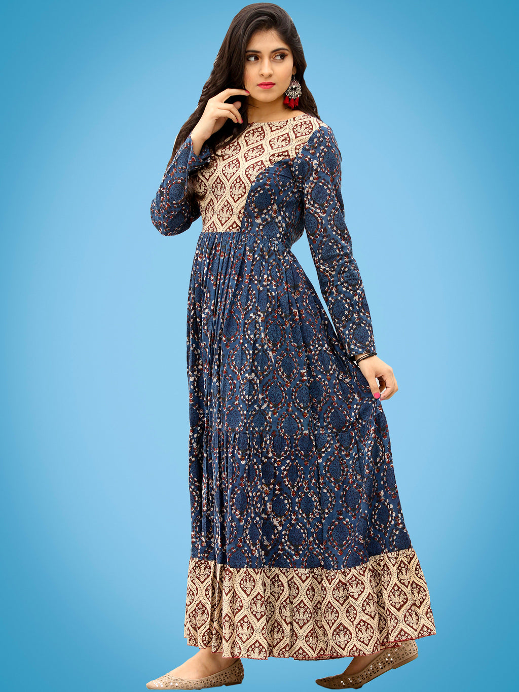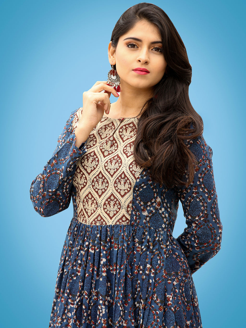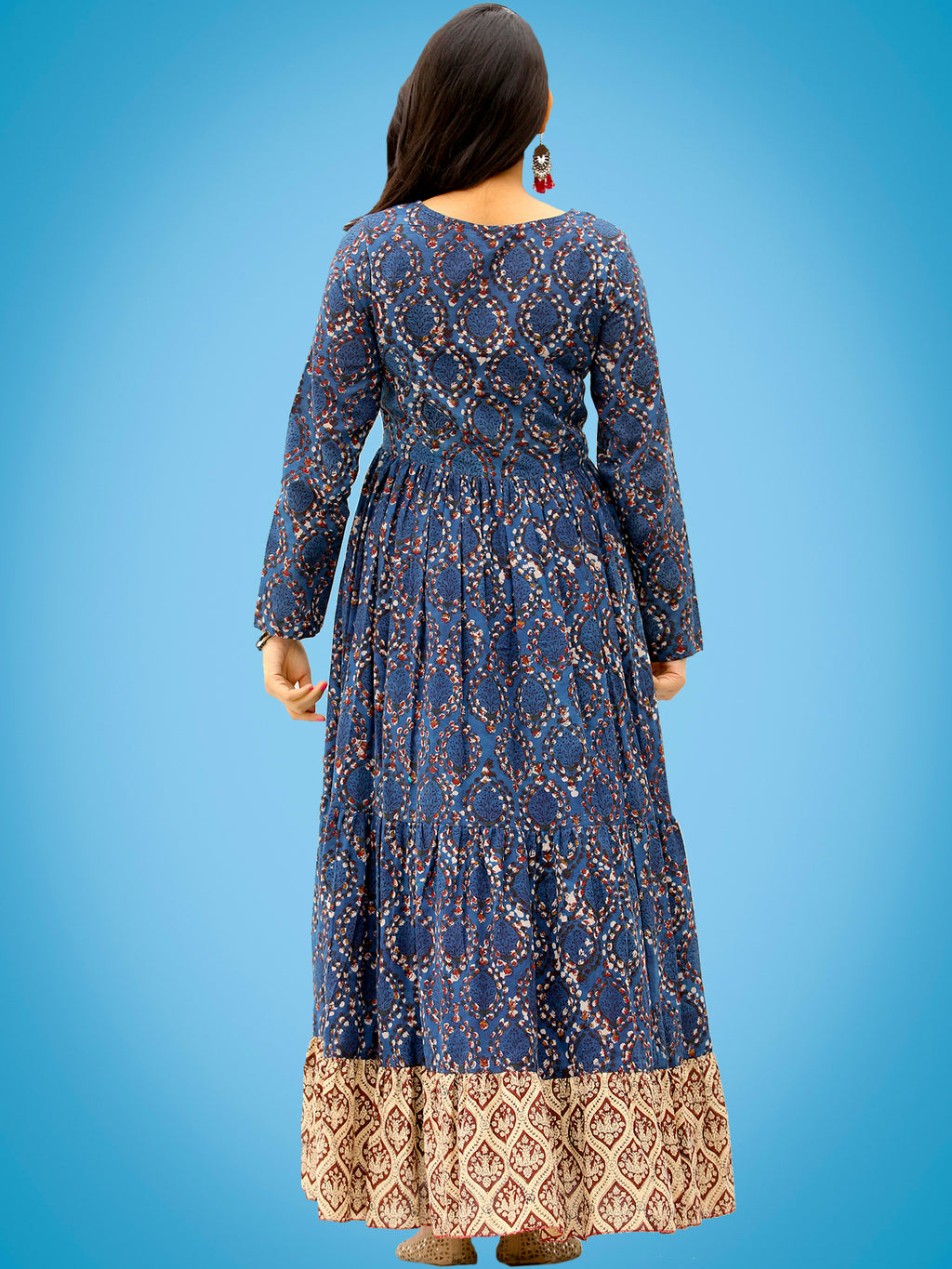 Taraab - Long Hand Block Printed Cotton Tier Dress - D139F1728