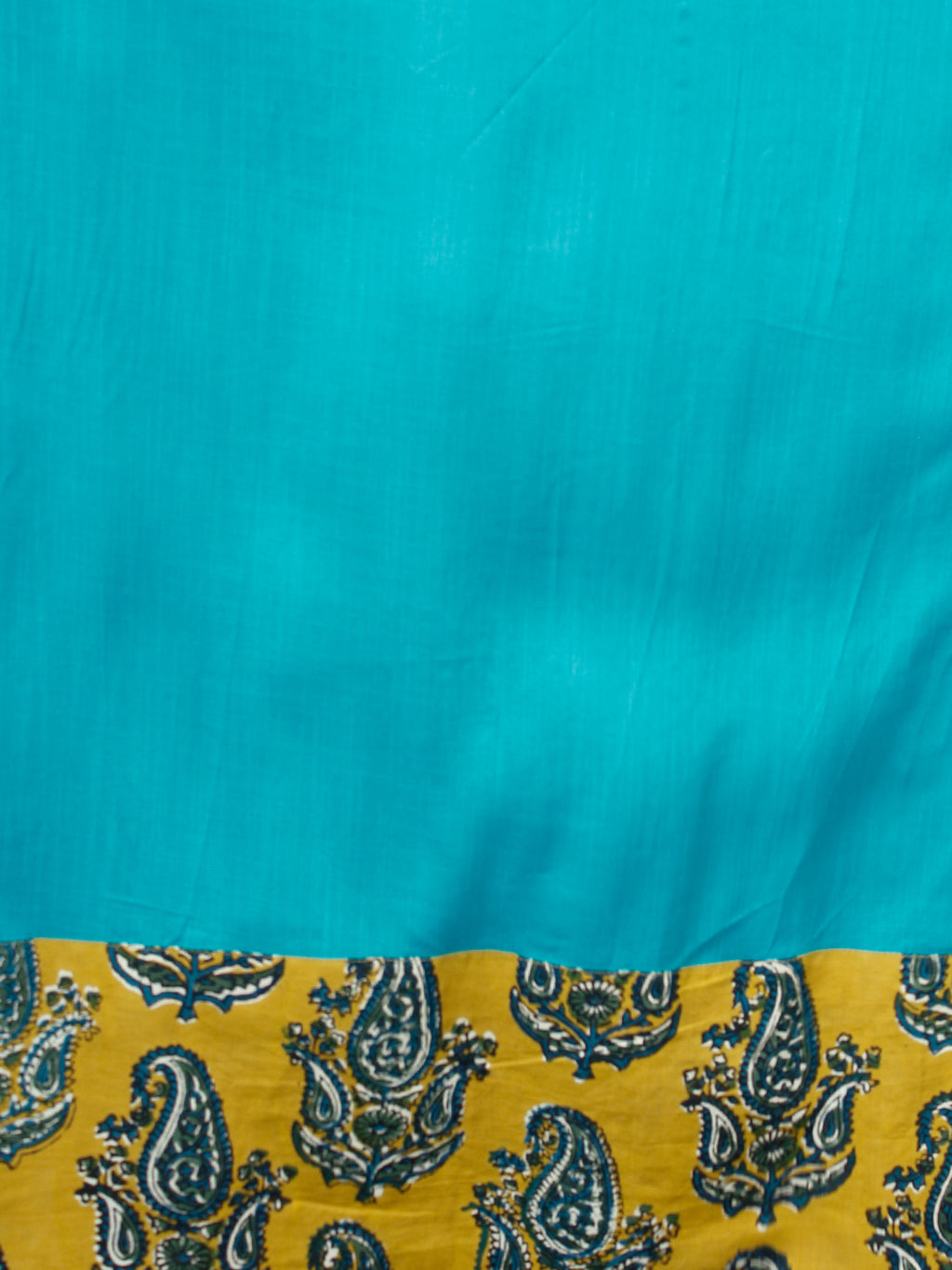 FABRIC/S: Rayon-Plain Cotton - Printed Colors: Light Teal Blue, Mustard Yellow, Blue, Green, Ivory