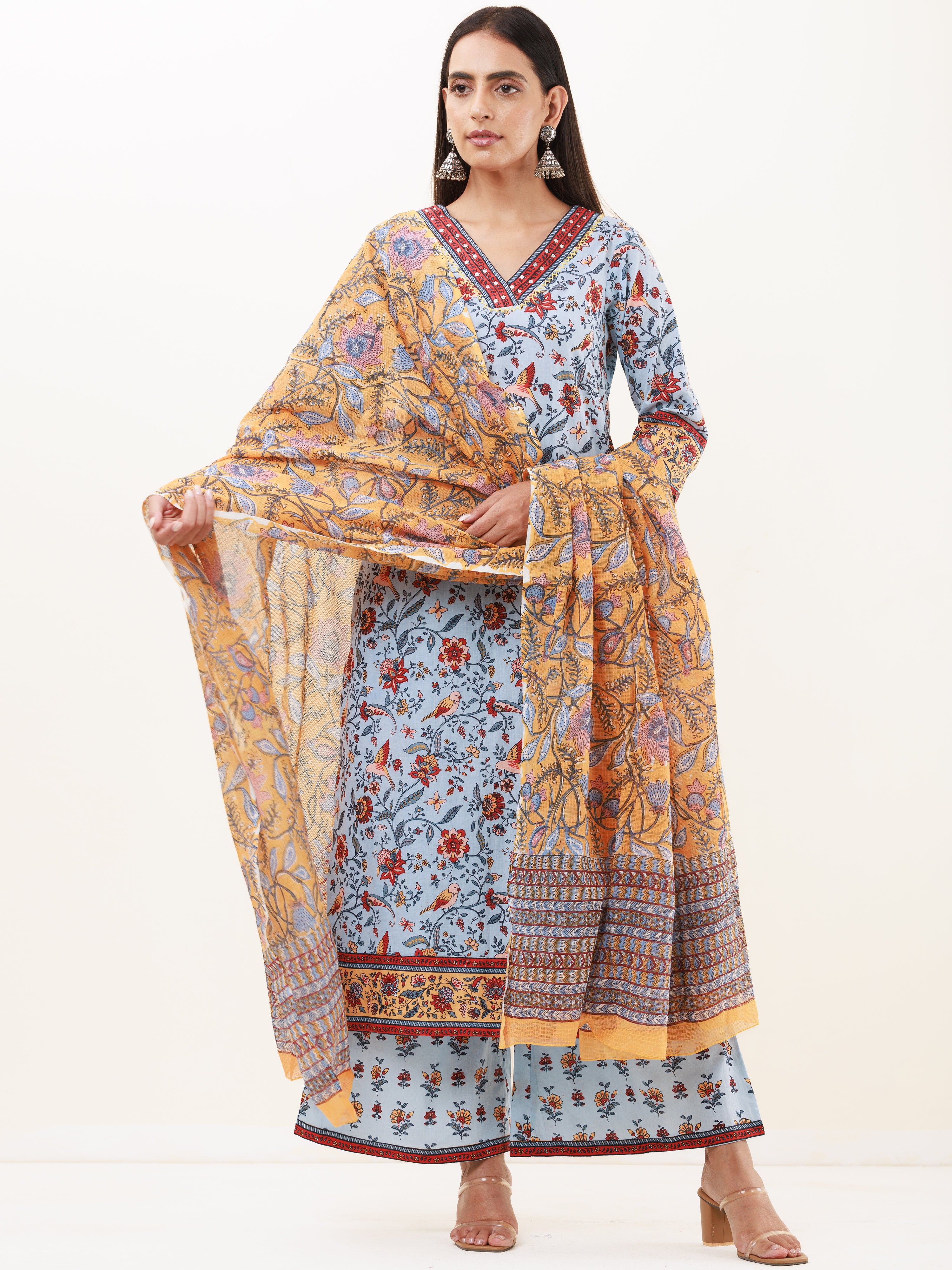 Fabric : Hand Block Printed. Kurta - Cotton . Pants - Cotton, Dupatta - Kota Doria