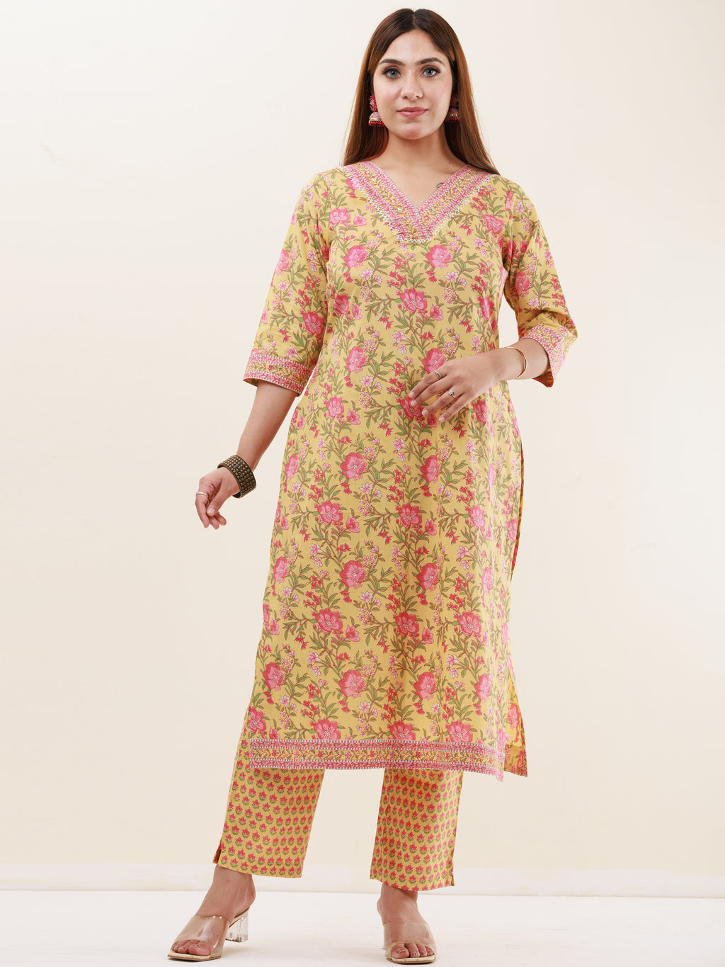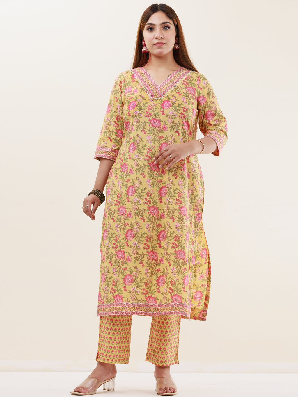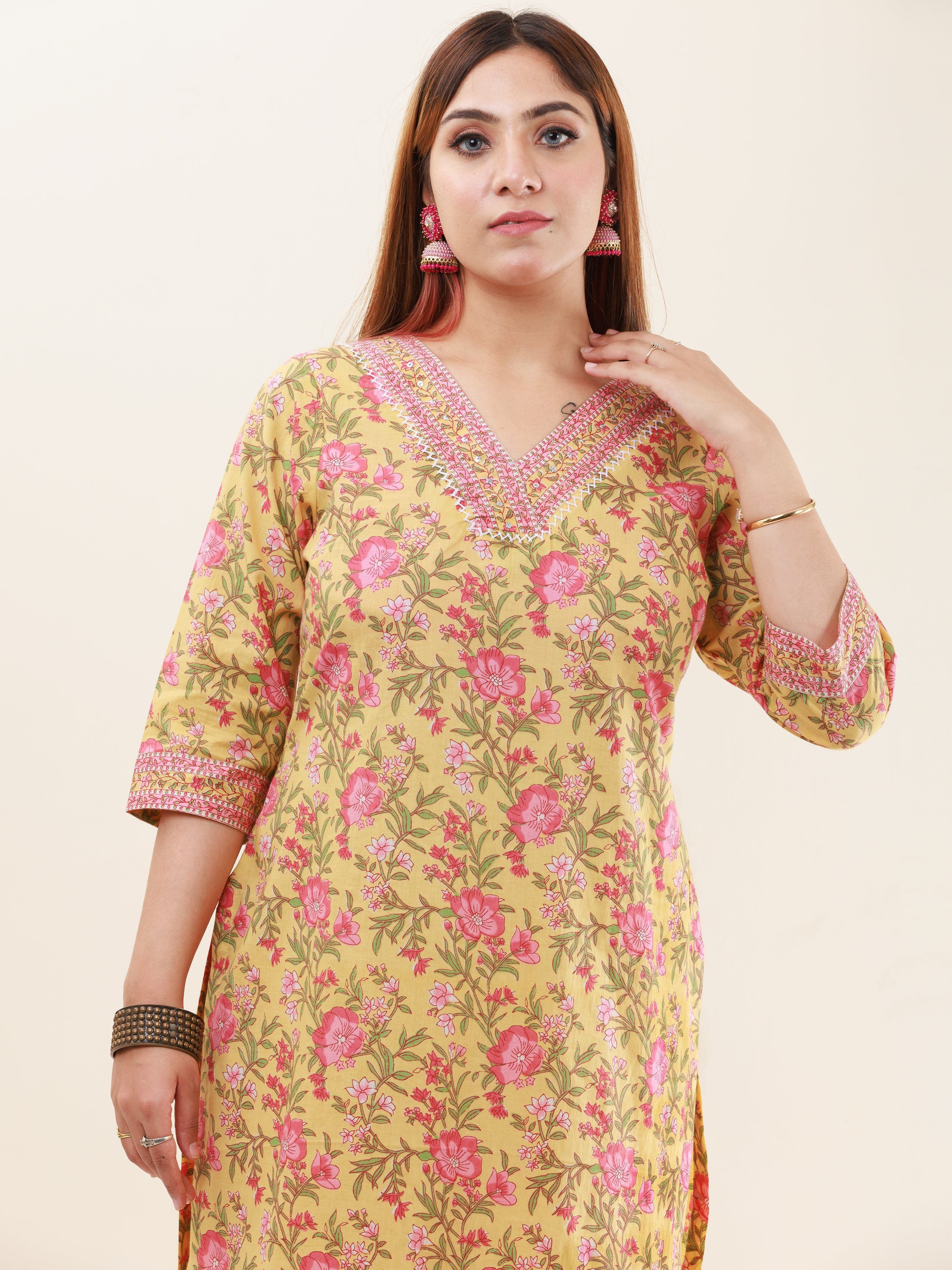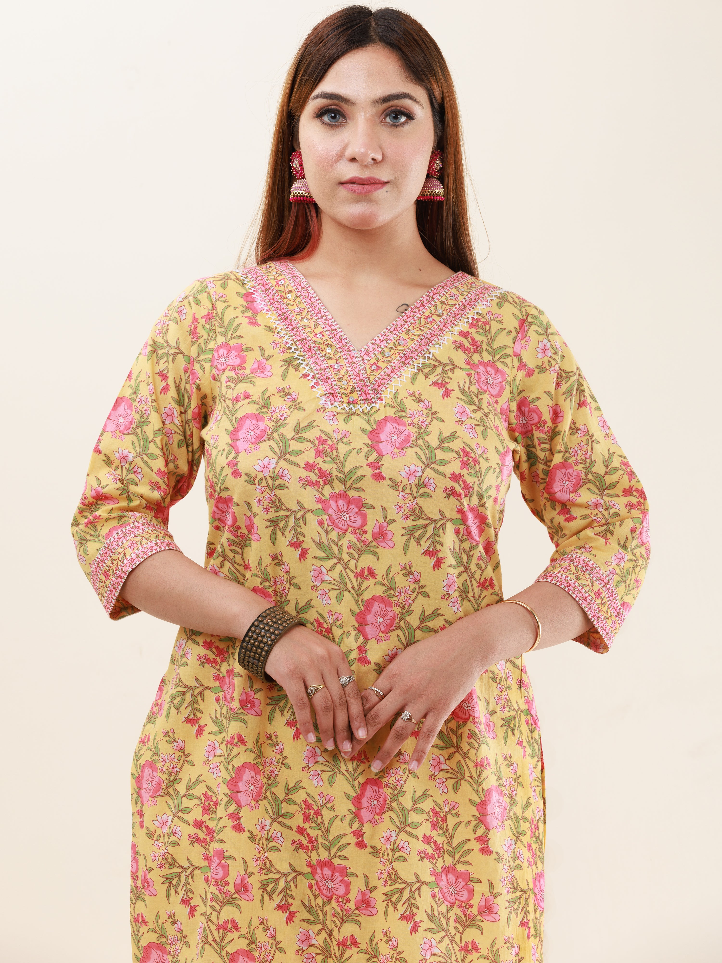 Product: Contains Hand Block Printed Cotton Kurta. Matching Pants/Bottoms and Dupatta are also available separately under BUY THE LOOK section.