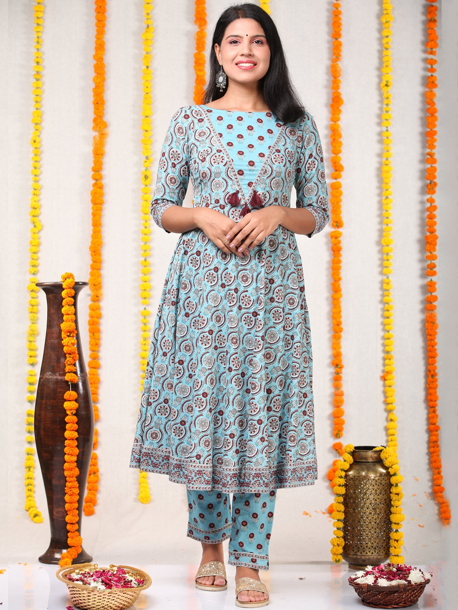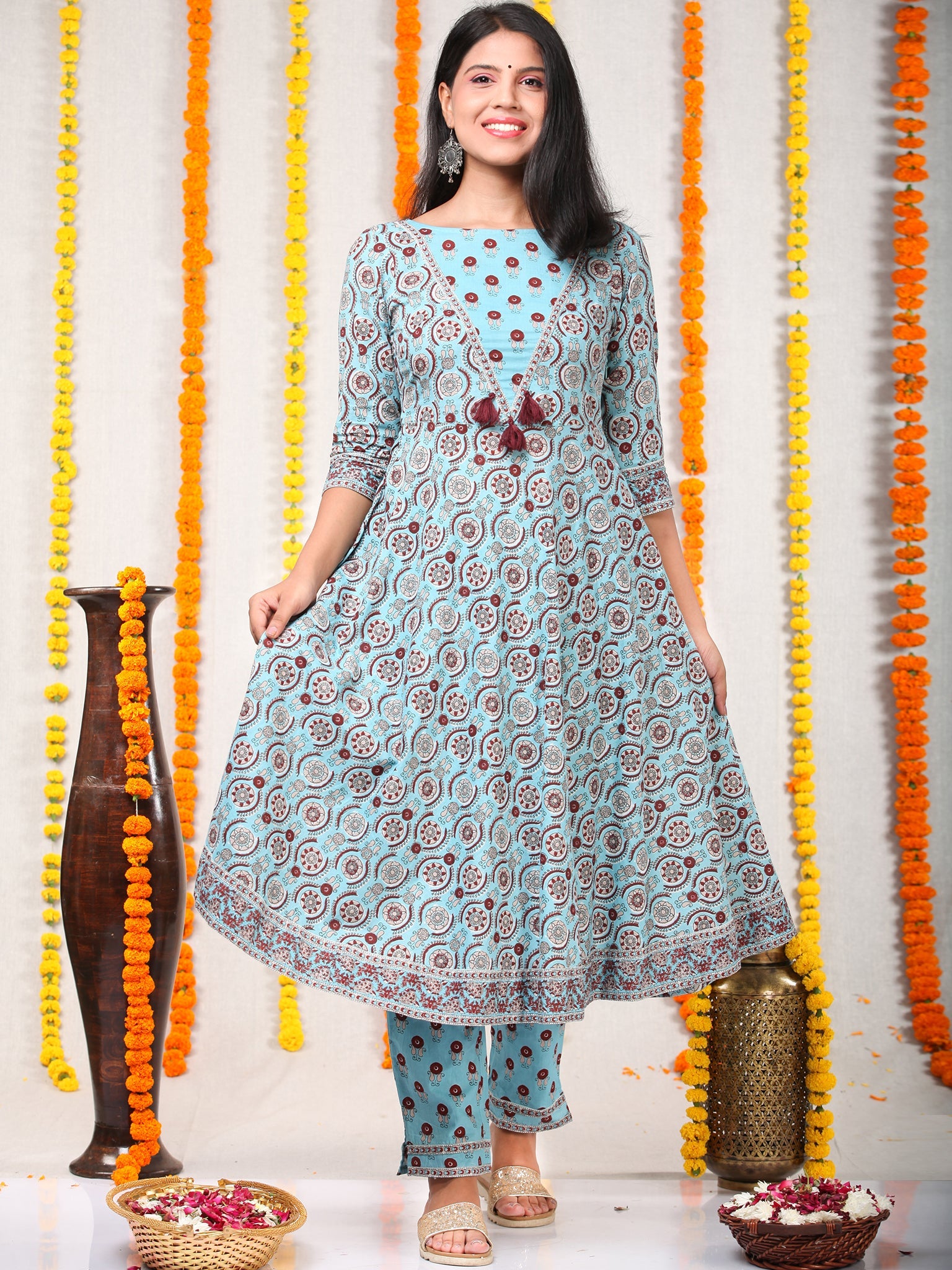 Product: Contains Hand Block Printed Cotton Kurta. Matching Pants/Bottoms and Dupatta are also available separately under BUY THE LOOK section.