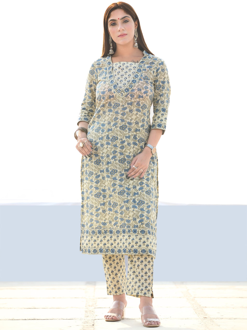 Product: Contains Hand Block Printed Cotton Kurta. Matching Pants/Bottoms and Dupatta are also available separately under BUY THE LOOK section.
