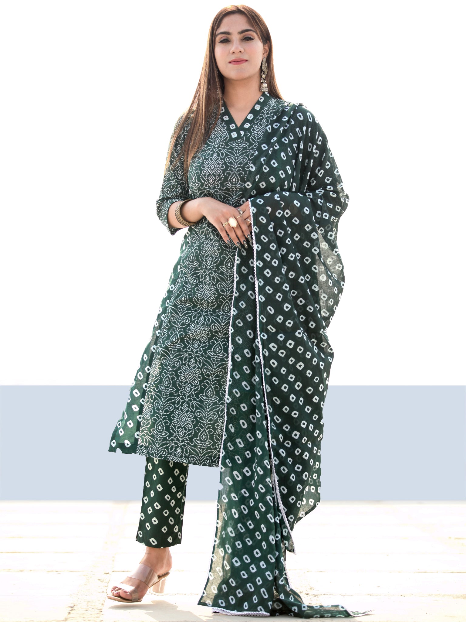 Product: This set contains Handcrafted Sanganeri Premium Cotton Kurta, 100% Cotton Pants and Cotton Dupatta.