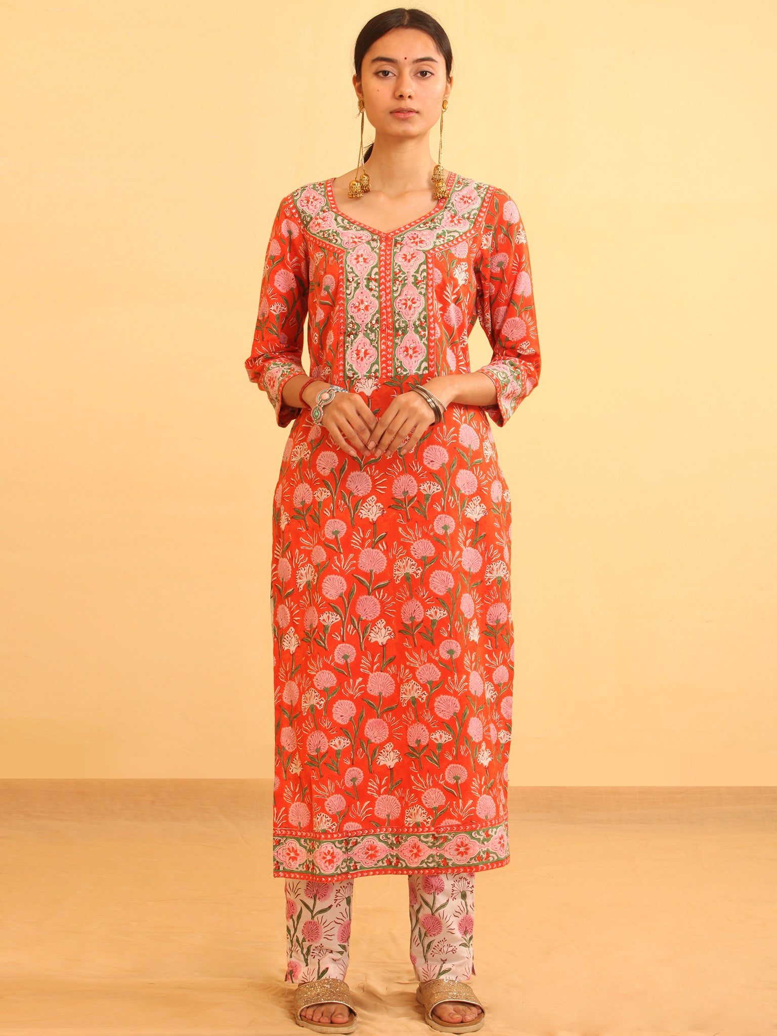 Product: Contains Hand Block Printed Cotton Kurta. Matching Pants/Bottoms and Dupatta are also available separately under BUY THE LOOK section.
