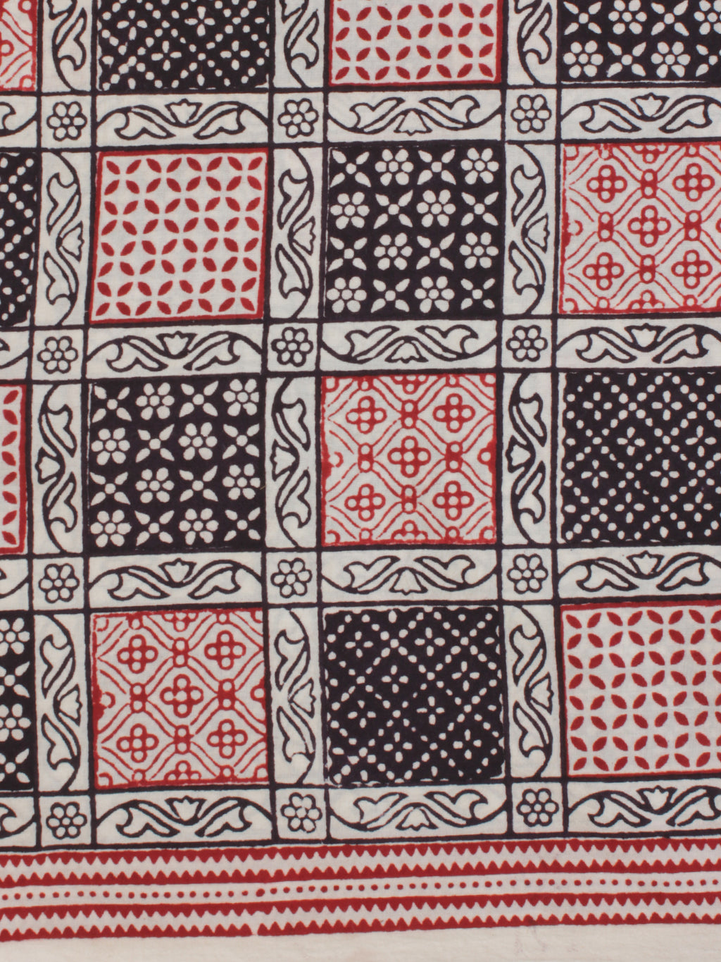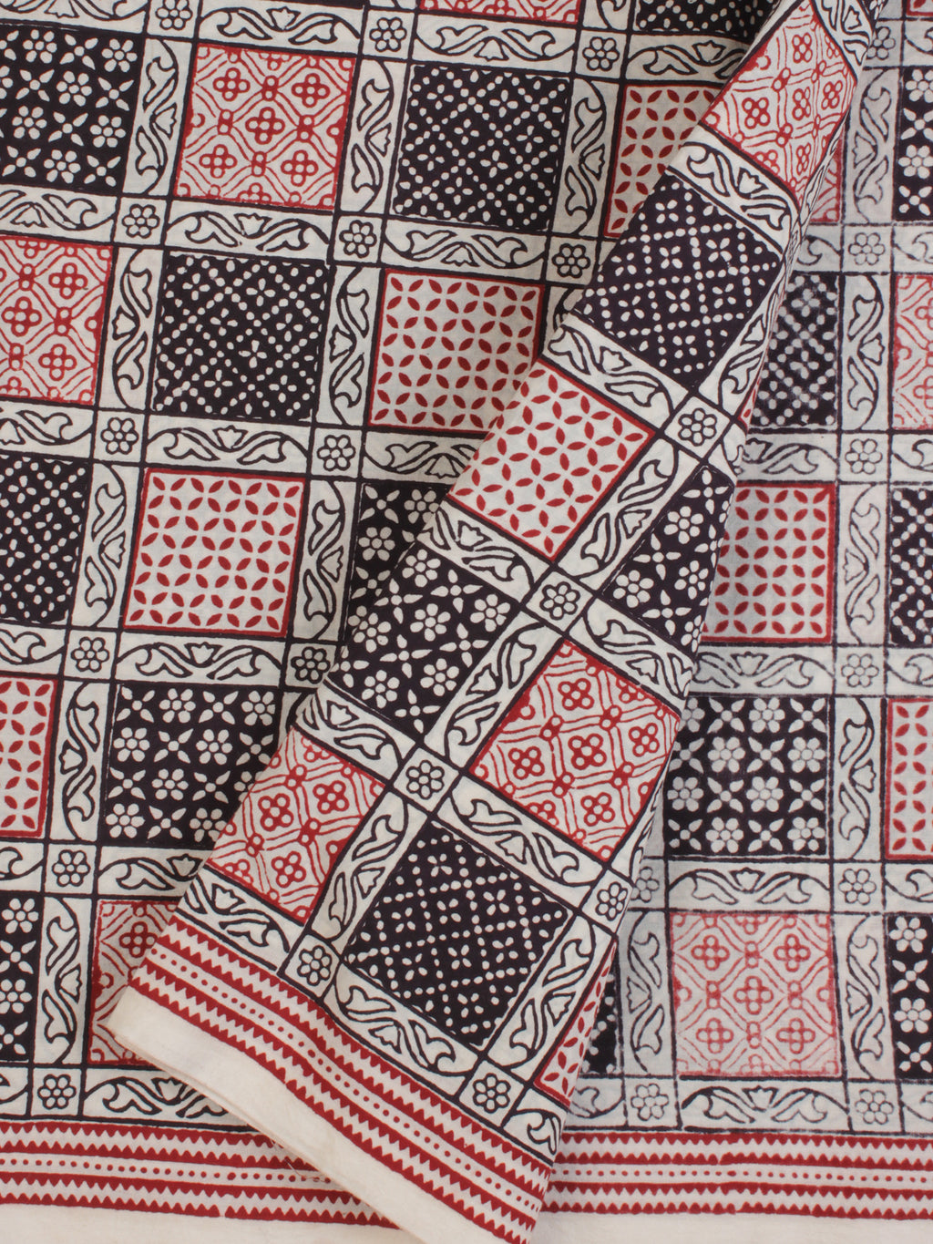 White Red Black Ajrakh Hand Block Printed Cotton Fabric Per Meter - F003F2088