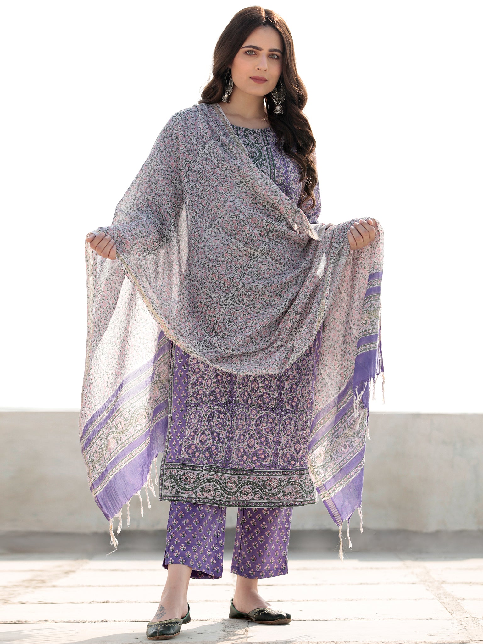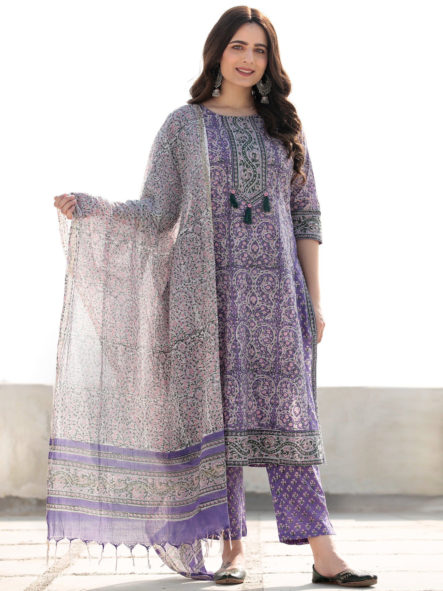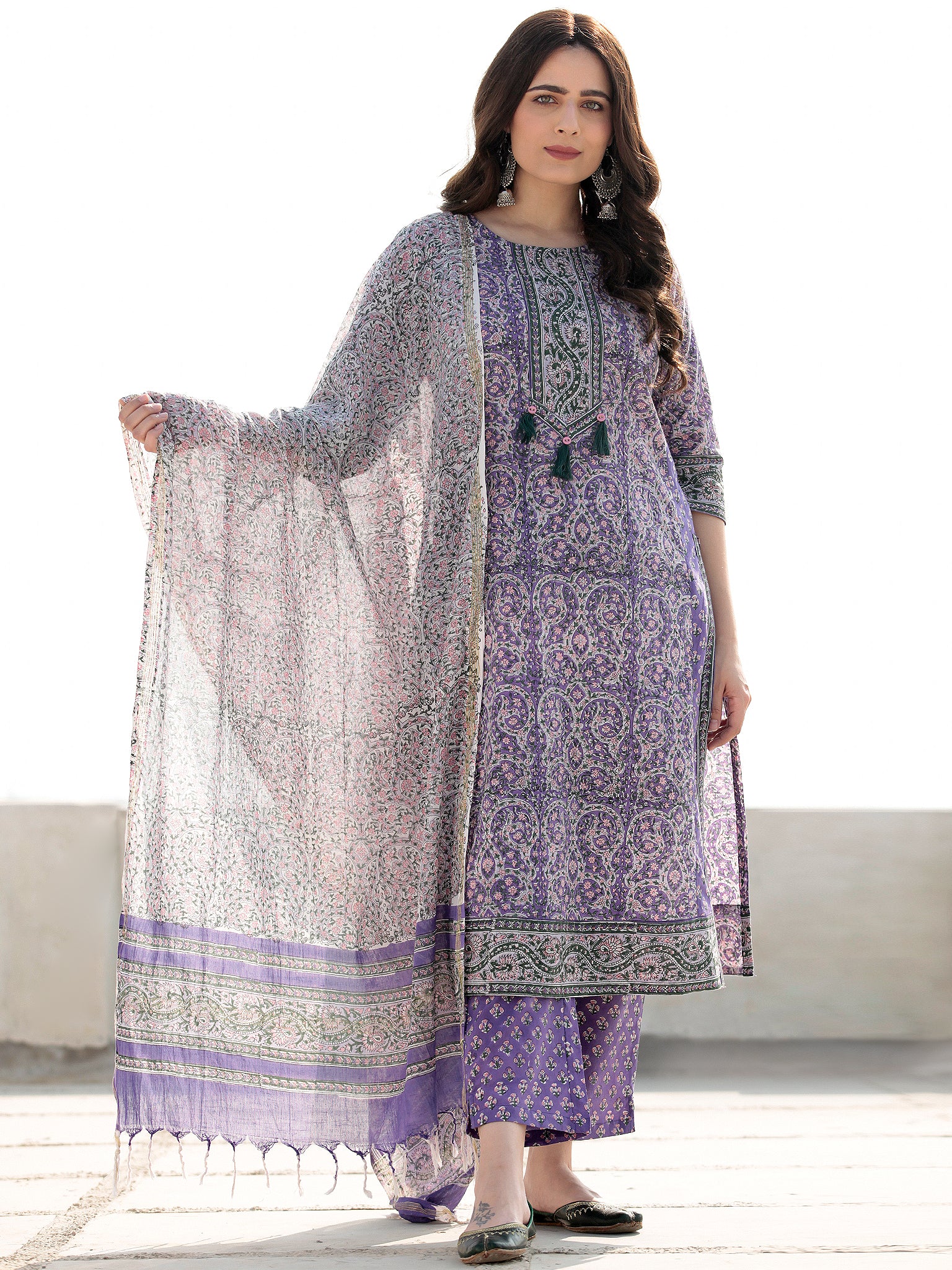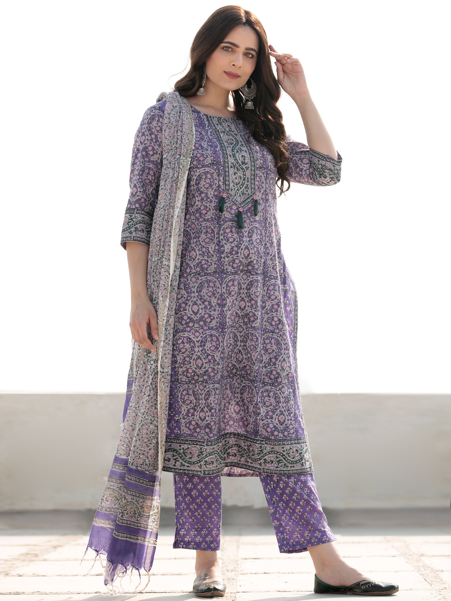 Product: This set contains Handcrafted Sanganeri Premium Cotton Kurta, 100% Cotton Pants and Kota Doria Dupatta.